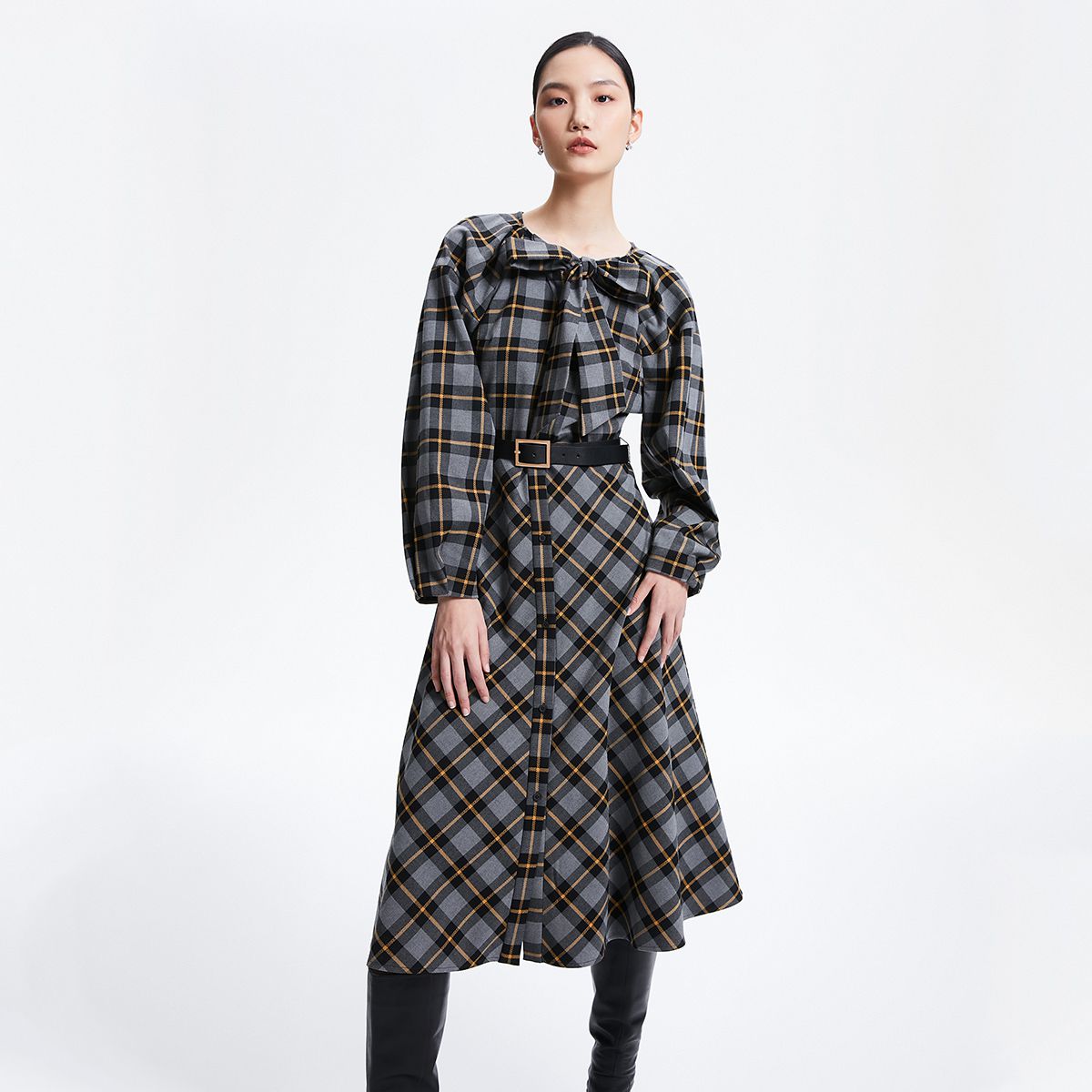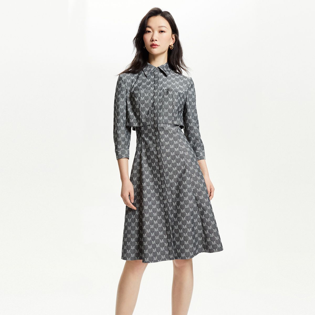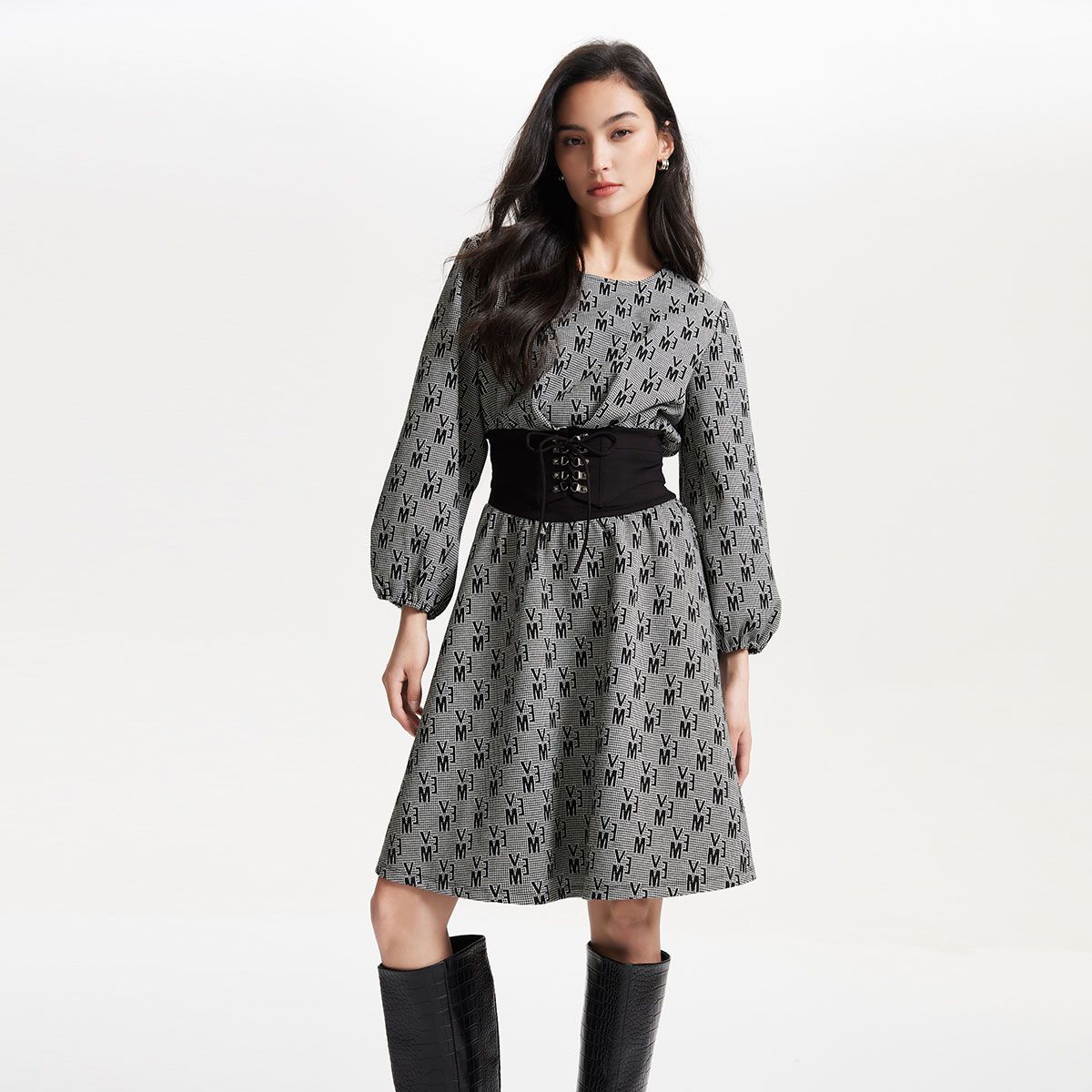 【满印字母】连衣裙七分袖收腰A字中长款通勤优雅时尚 709777