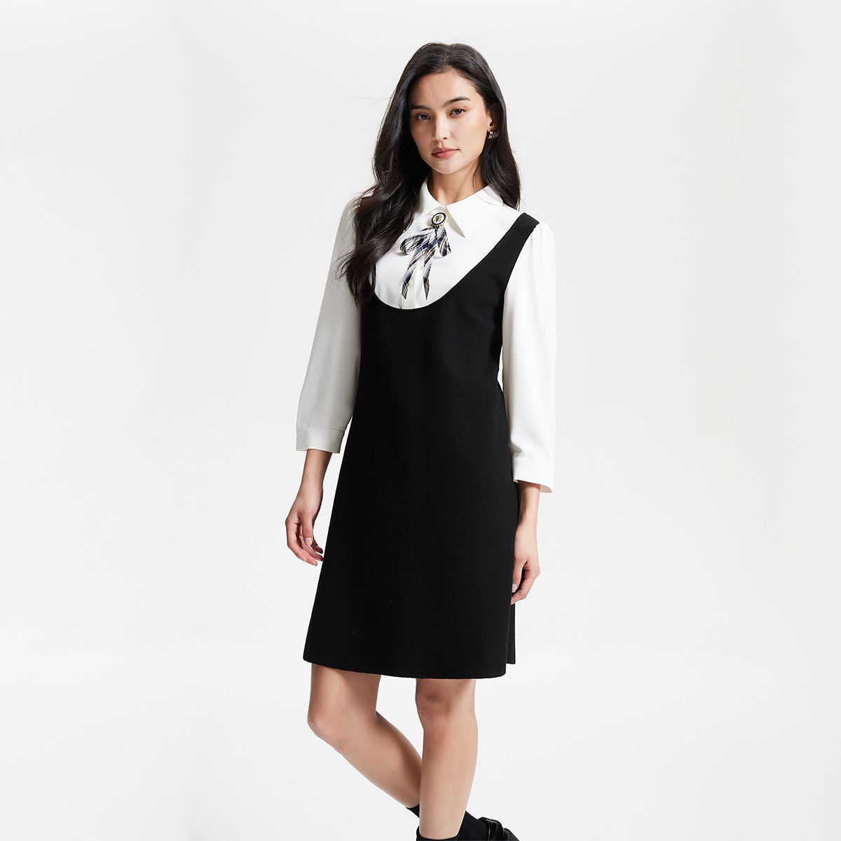 【优雅高级】连衣裙可爱可拆卸背心宽松黑色长袖中裙女 731793