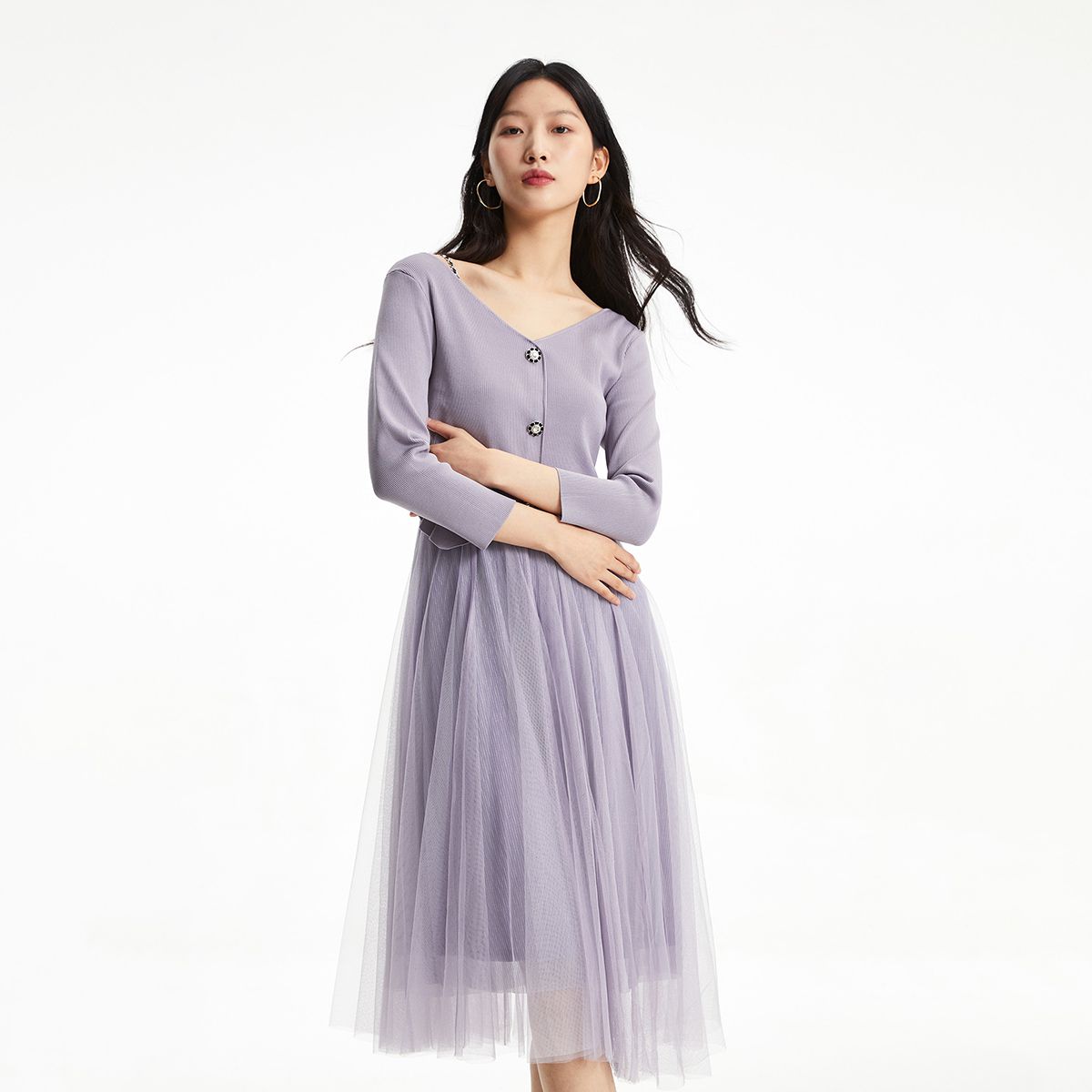 【A字裙摆设计】25春季新款真两件针织网纱A摆优雅简约气质 415313