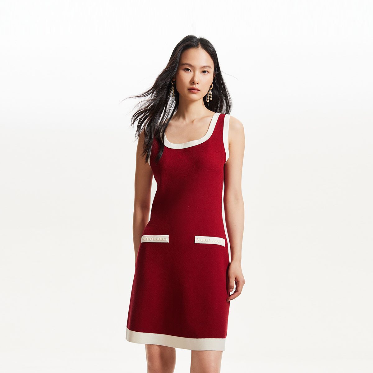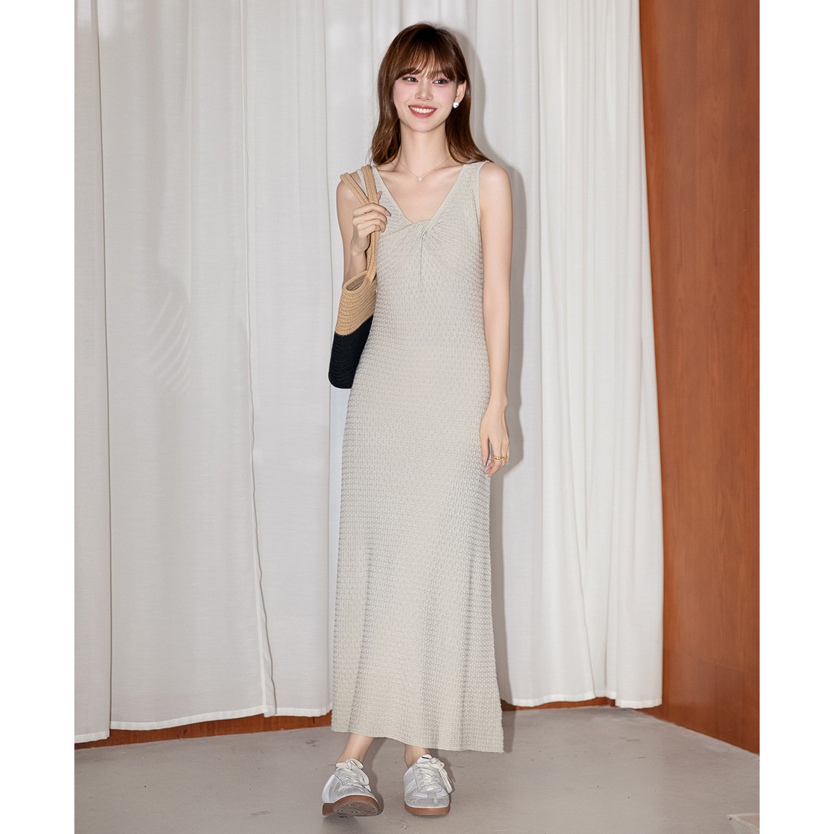 【联名款】针织连衣裙赵小黎艺术家联名系列方领收腰吊带优雅气质 015889