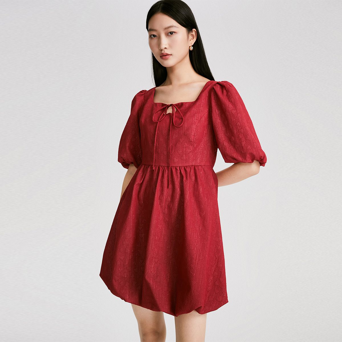 【专柜款】春夏甜美可爱泡泡袖花苞方领娃娃裙连衣裙气质百搭时尚 738641