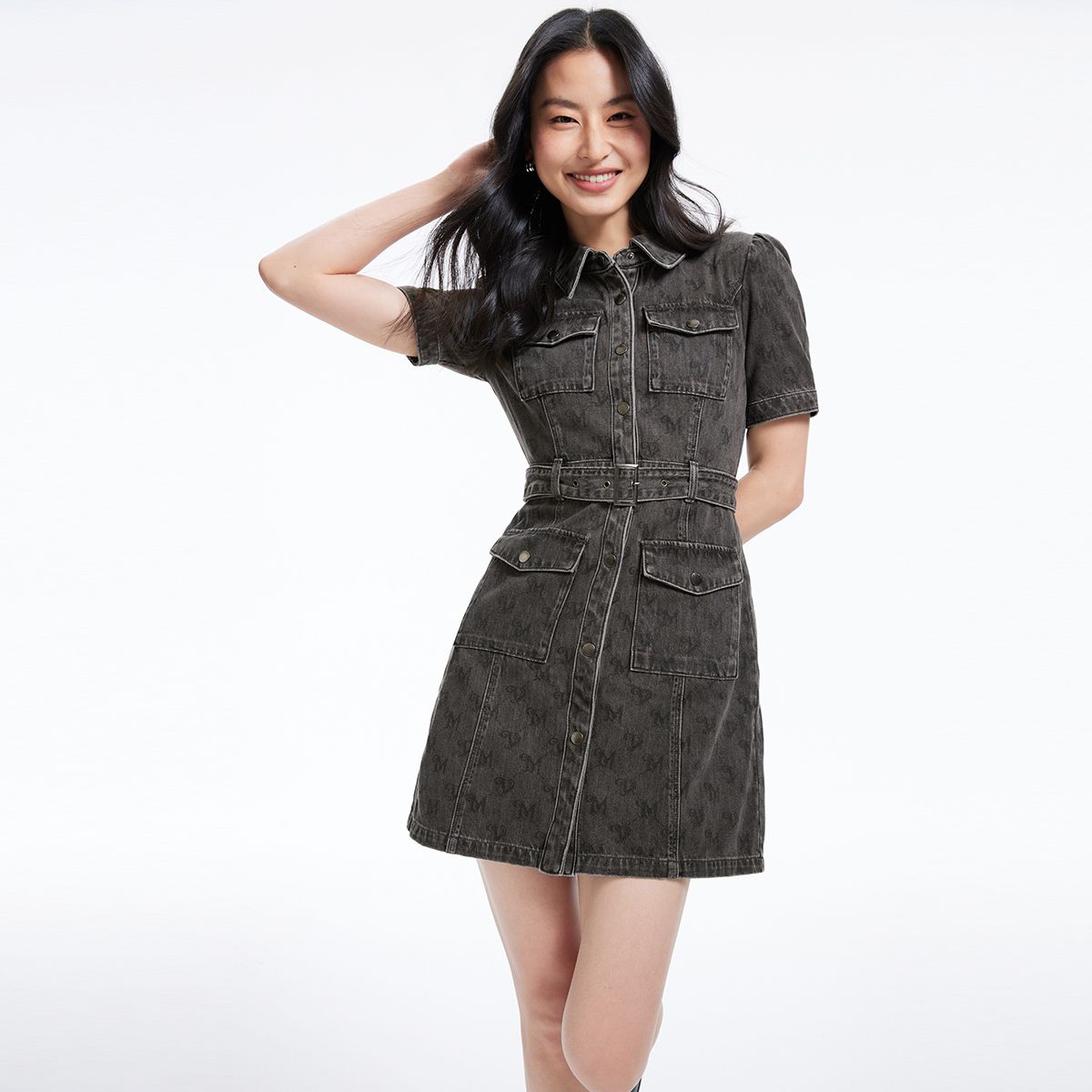 【工装风】连衣裙街头工装风A版印花短款口袋减龄时尚 200337