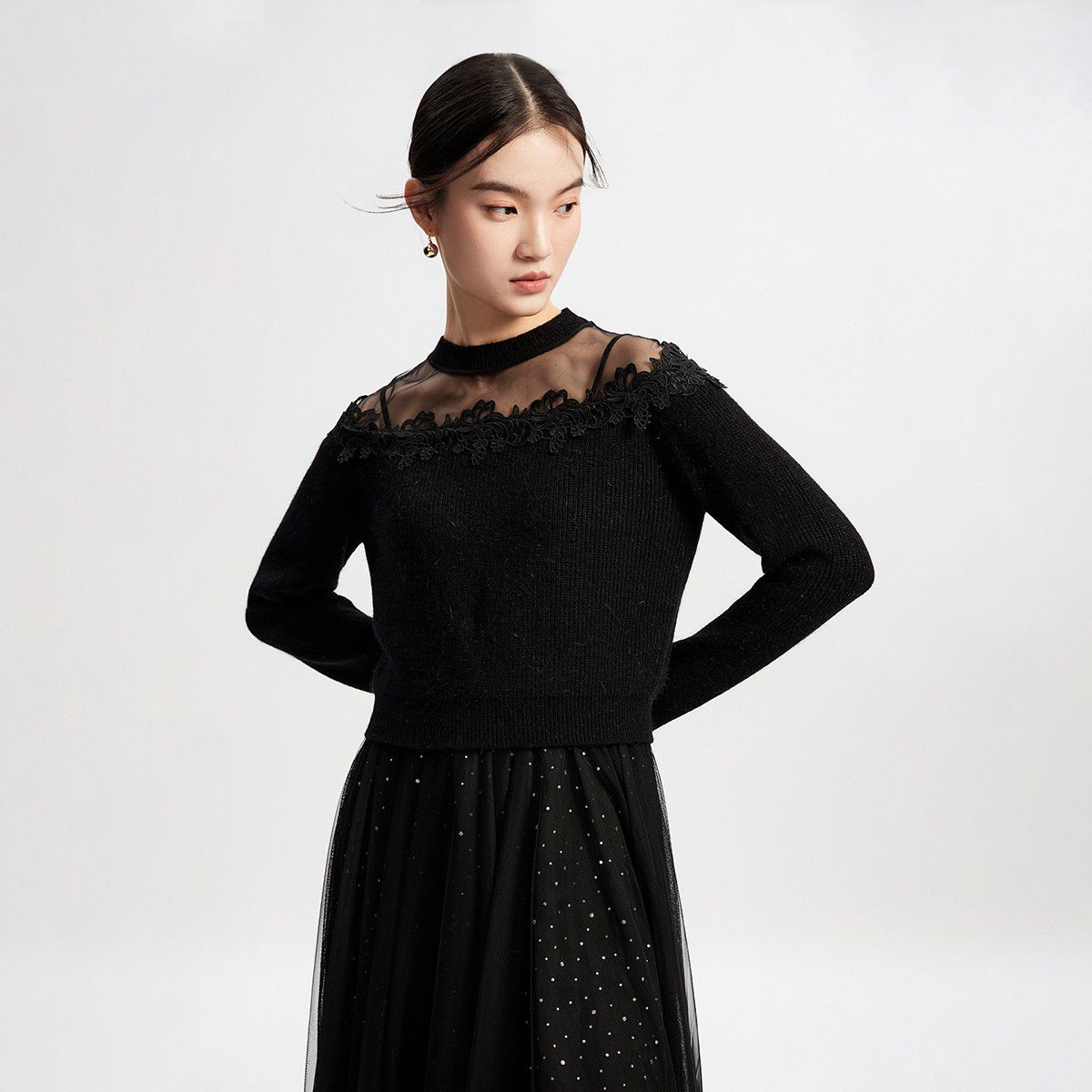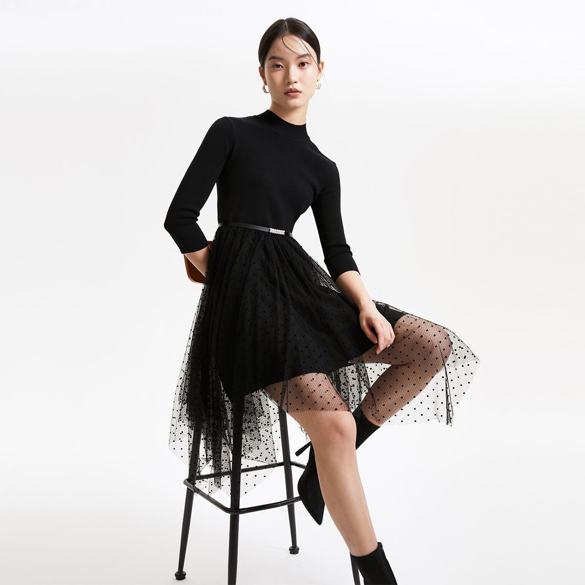 毛衣针织衫连衣裙拼接网纱宽松吊带优雅 218705