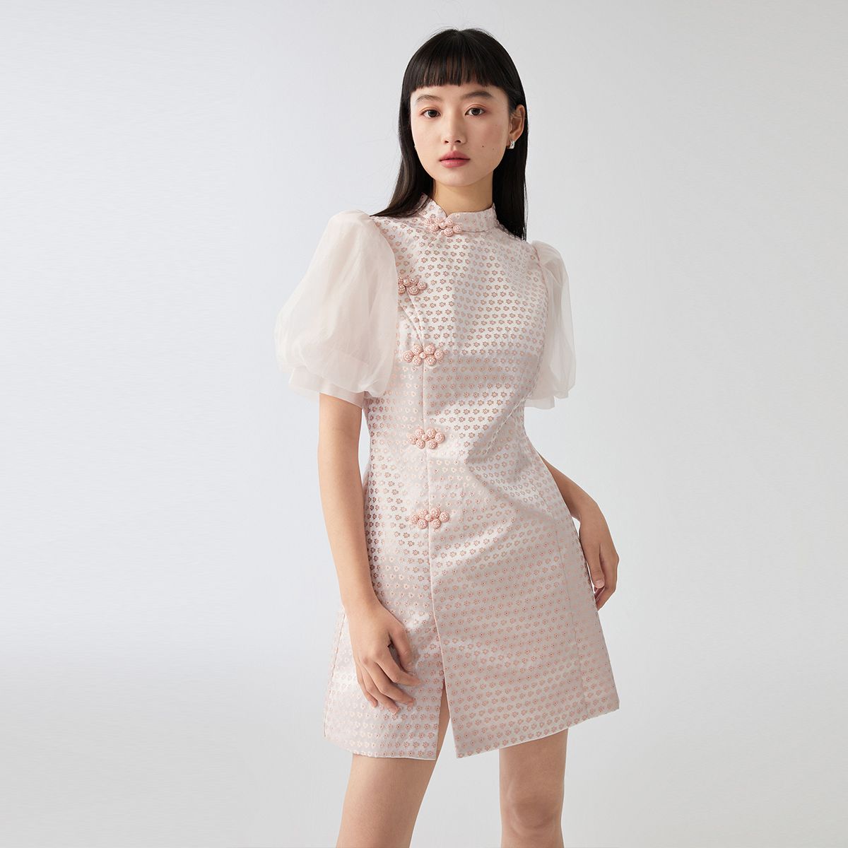 【新中式国风盘扣旗袍】专柜减龄泡泡袖连衣裙 204945