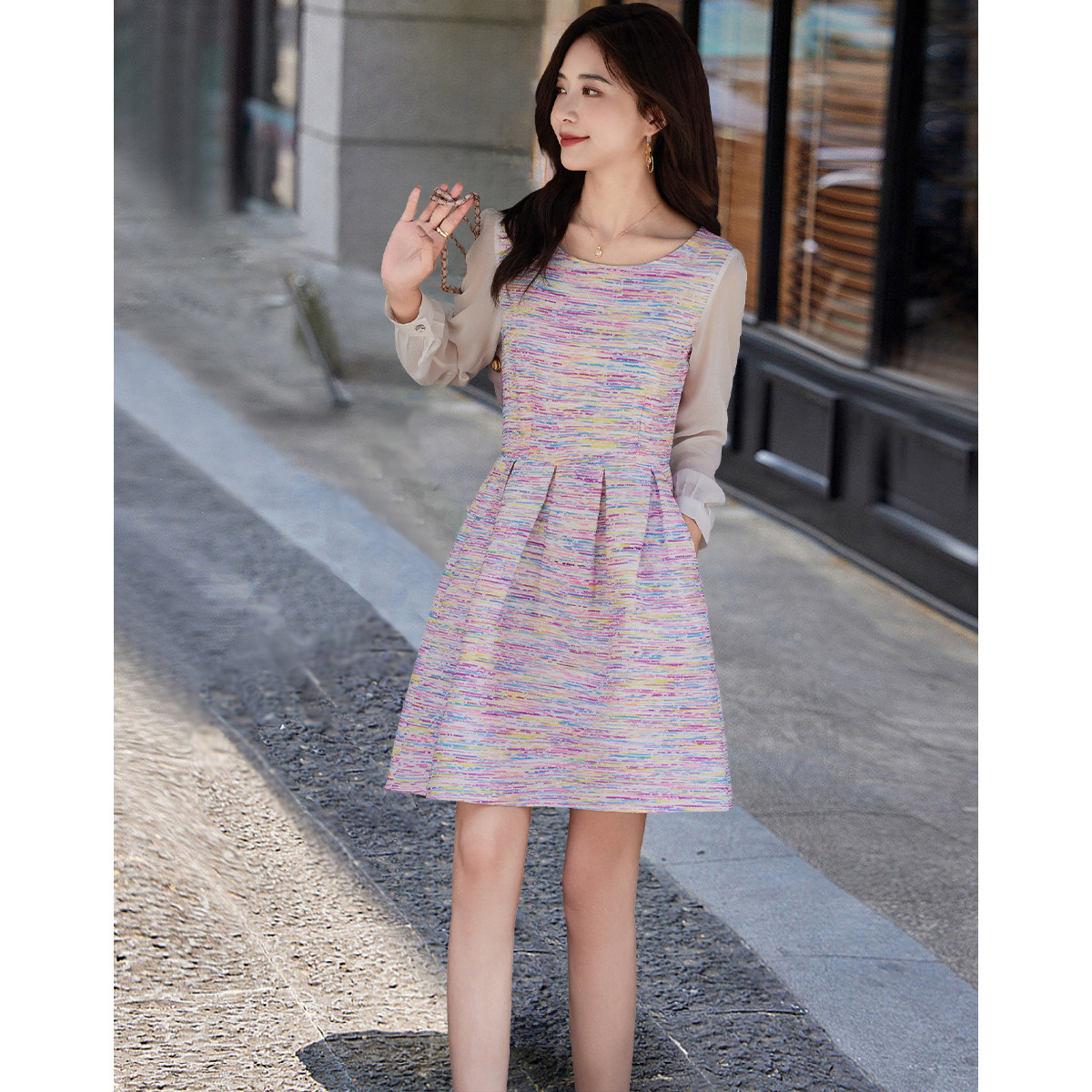 春季收腰显瘦气质A摆连衣裙 355295