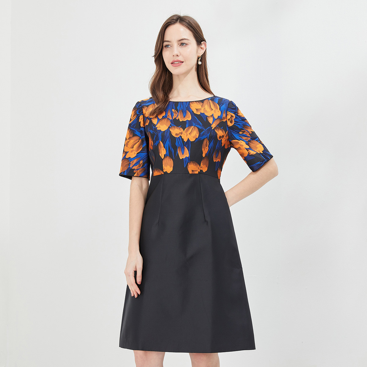 【春夏专柜款】优雅时尚七分袖印花连衣裙气质百搭 222865