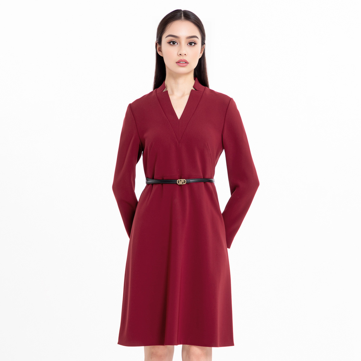 PORTS宝姿女装秋冬时尚气质优雅舒适长袖中长连衣裙 023050