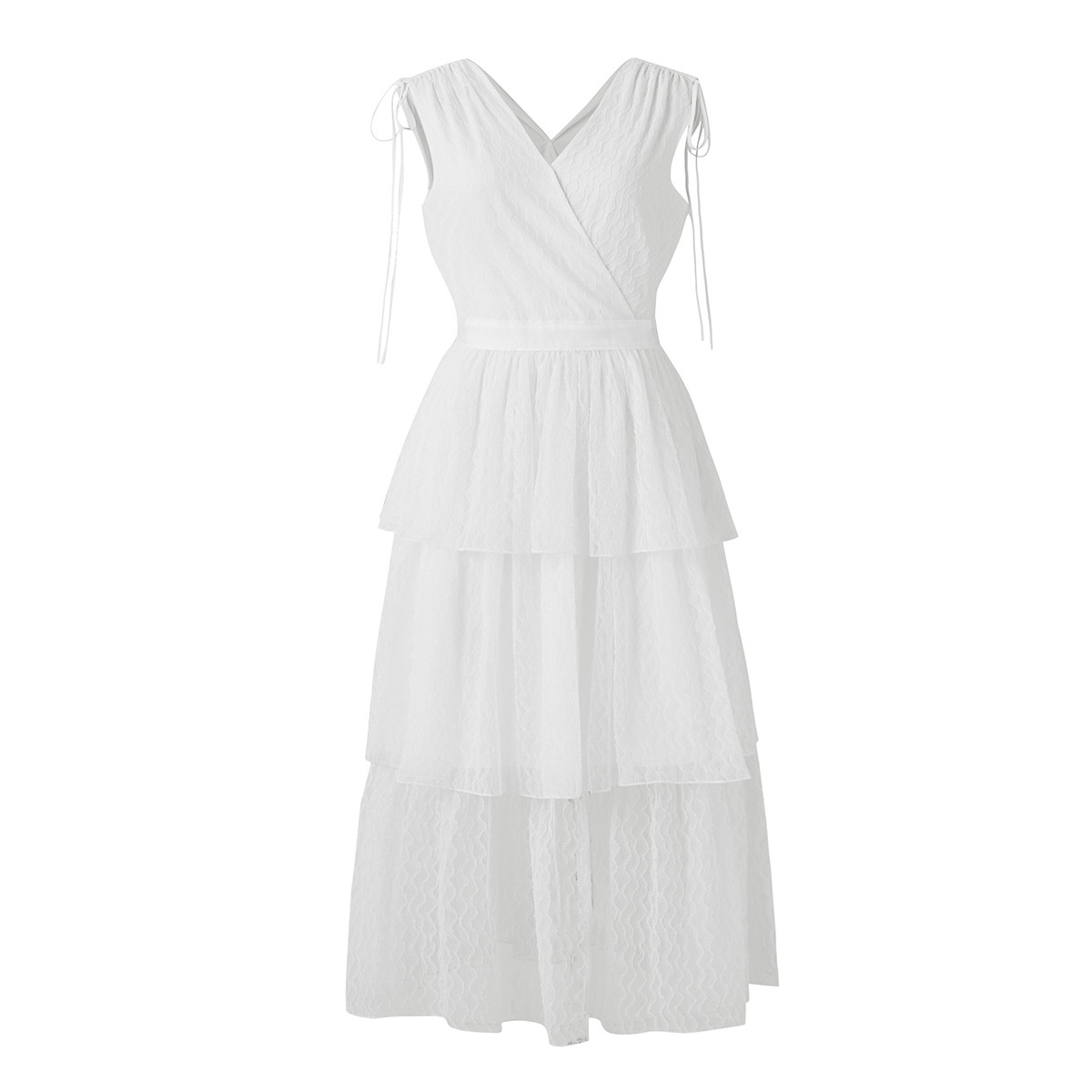 夏装v领褶皱荷叶边连衣裙女假两件气质显瘦短裙 979220