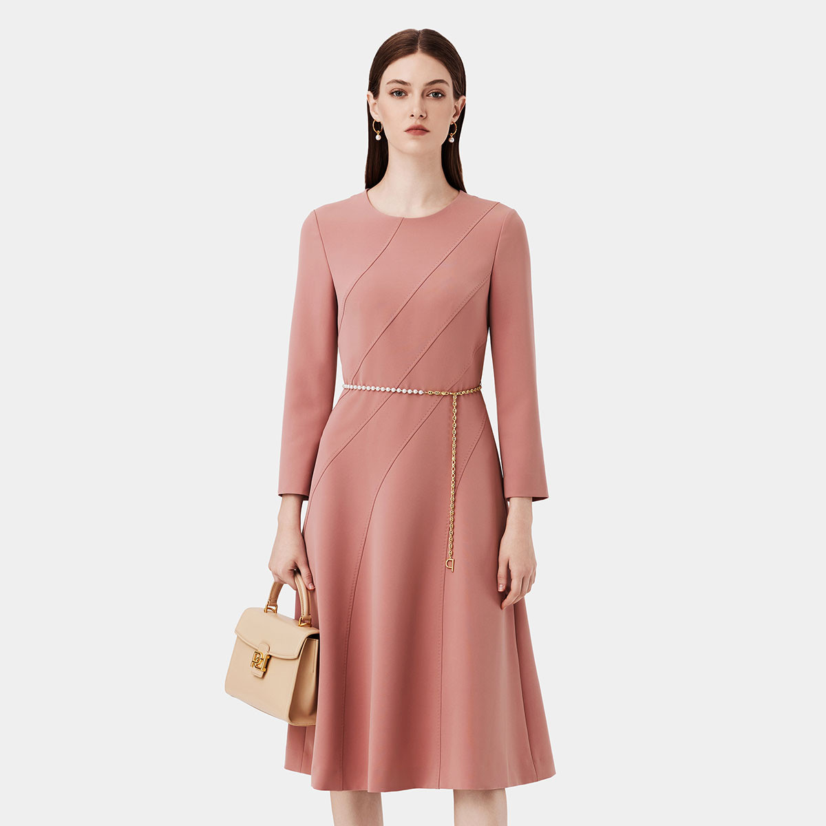 宝姿女装秋季时尚气质舒适通勤中袖中长连衣裙 029706