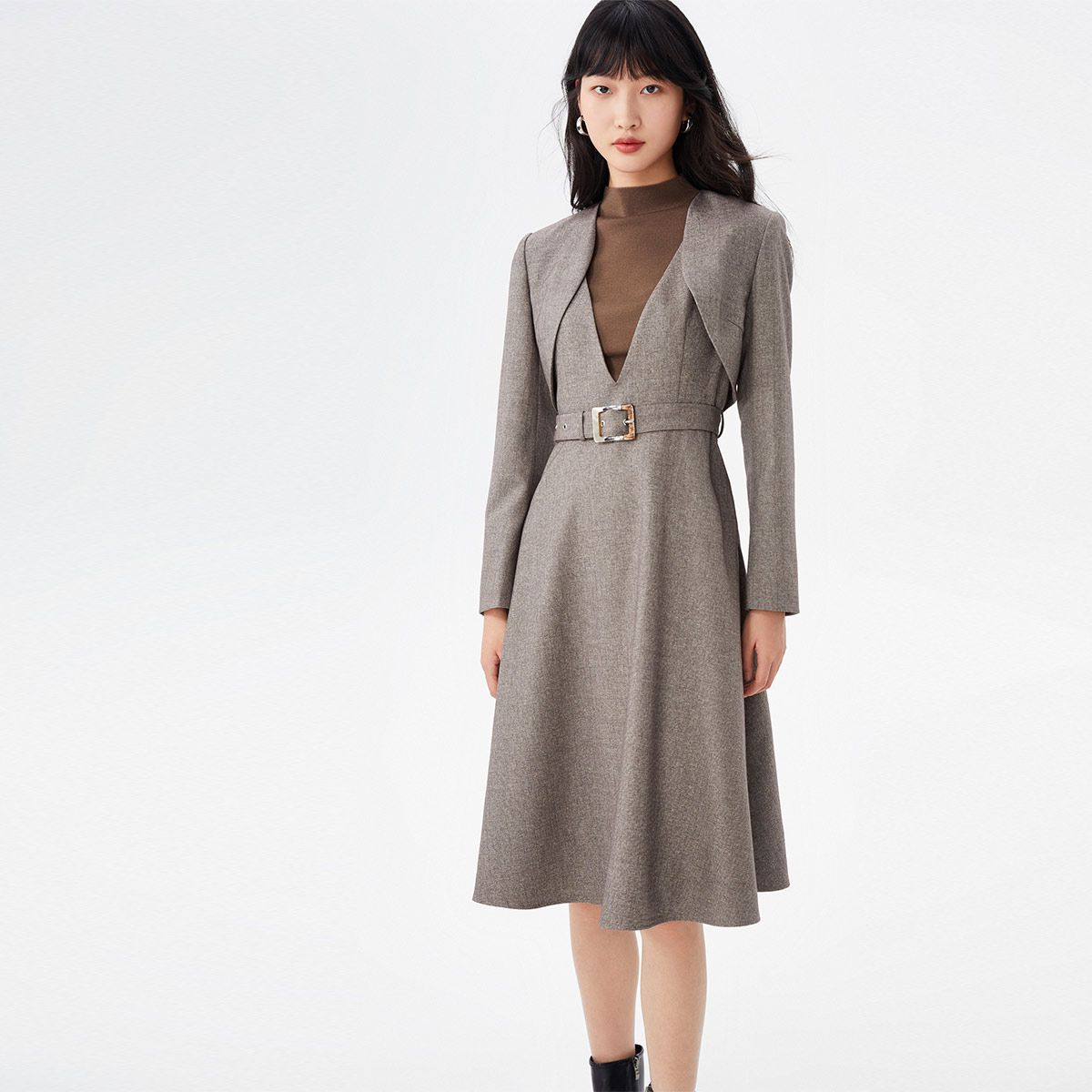 【专柜同款】春夏谢谢收腰中长长袖西装连衣裙气质百搭时尚 255825