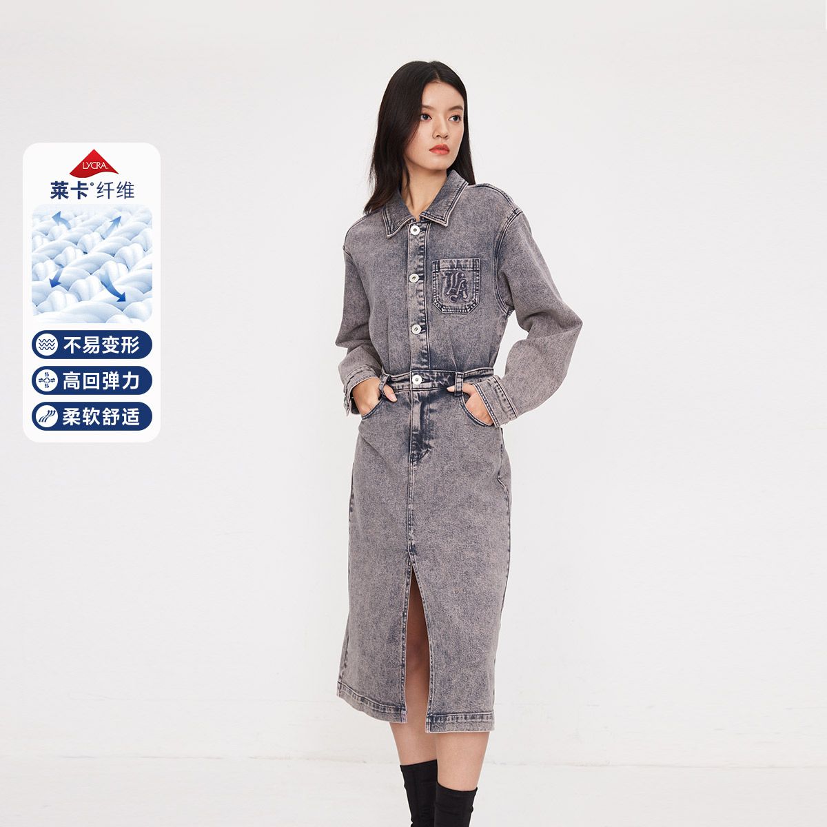 【NBA联名】夏季莱卡A字牛仔衬衫连衣裙女 585306