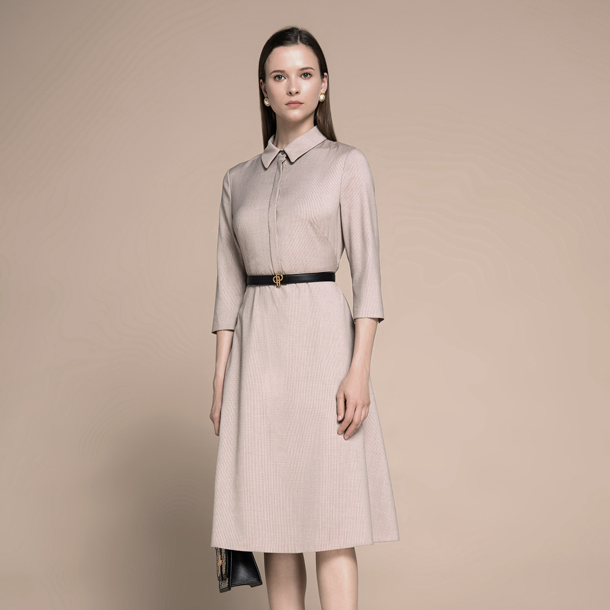 宝姿女装春夏优雅气质百搭中袖中长连衣裙 337610