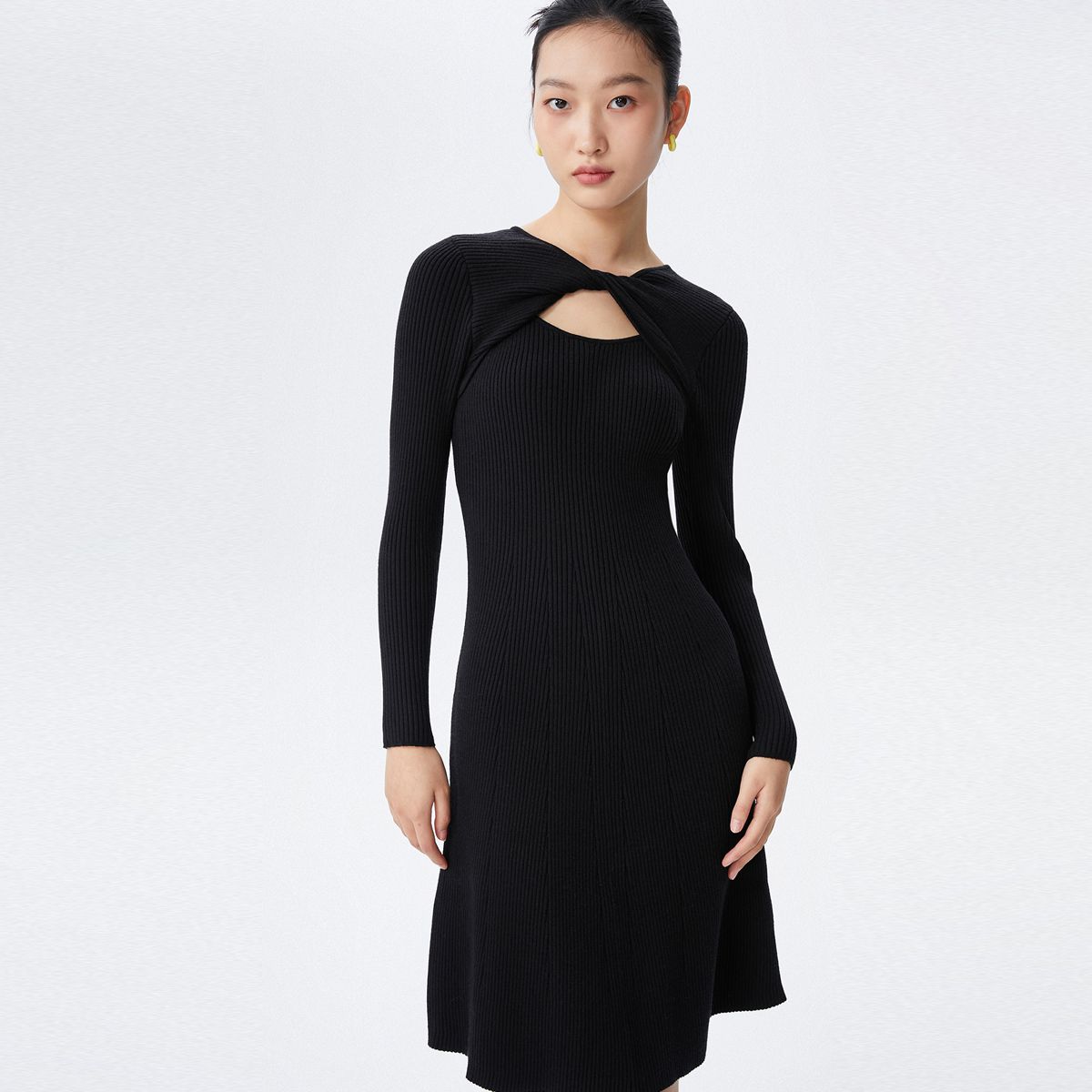 长袖针织裙女优雅气质长连衣裙过膝长裙子 386435