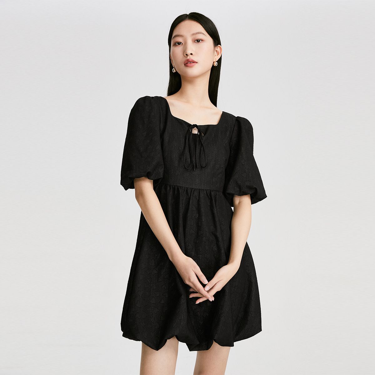 【专柜款】春夏甜美可爱泡泡袖花苞方领娃娃裙连衣裙气质百搭时尚 908177