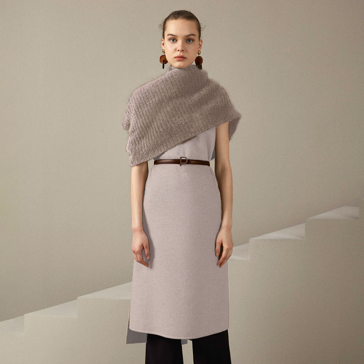 宝姿女装秋季造型围巾双面呢连衣裙 854218