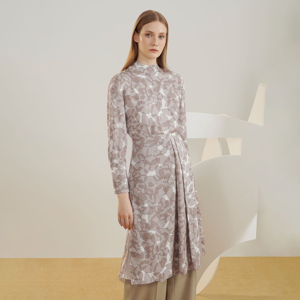 宝姿女装秋冬优雅印花通勤连衣裙女 318410