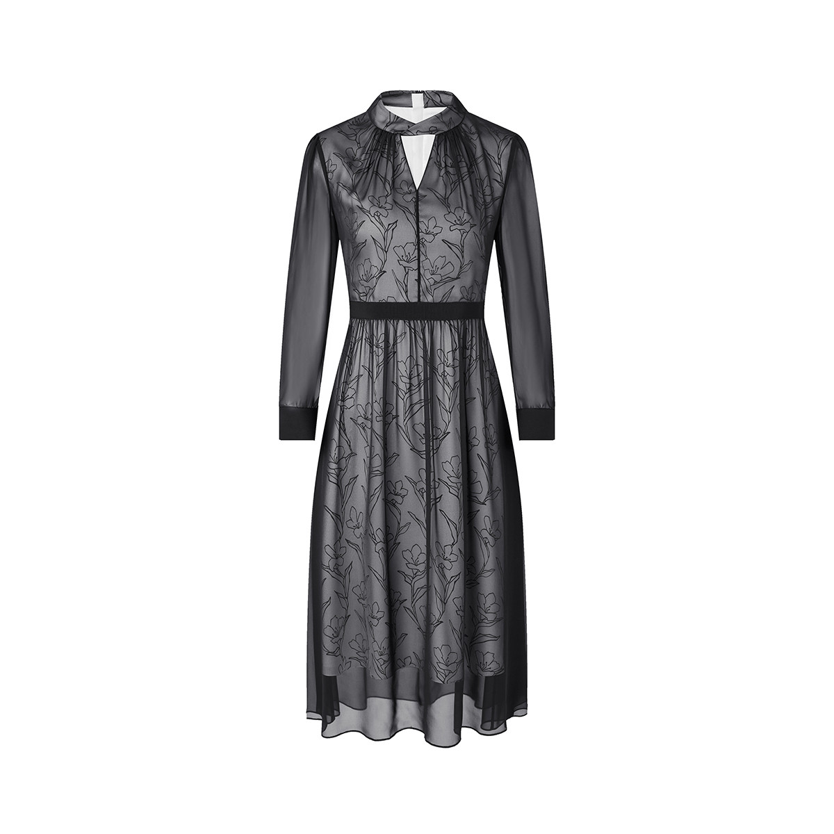 宝姿春秋女装通勤优雅网纱拼接层叠设计长袖圆领长连衣裙 310858