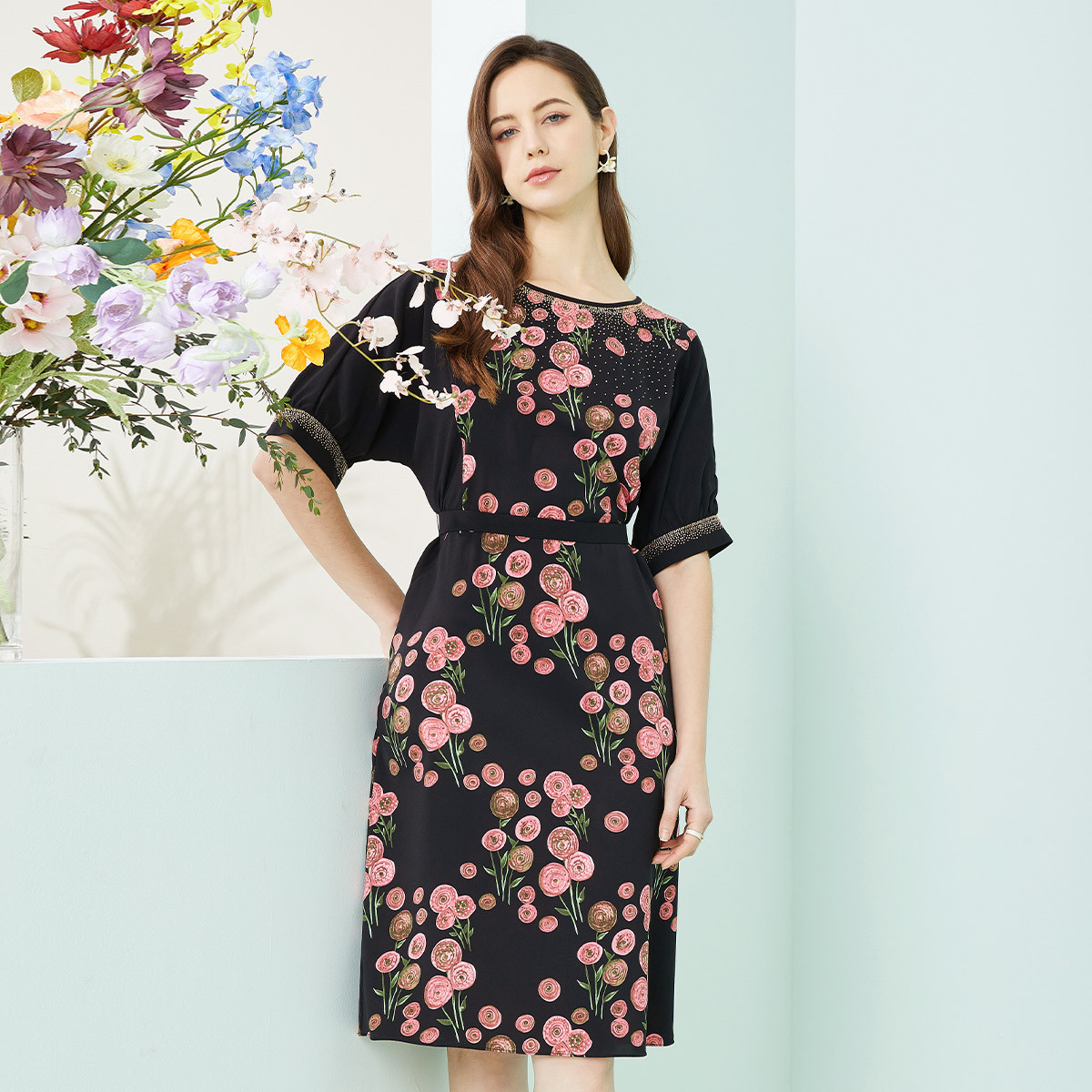 【商场同款】暗香疏影连衣裙女式长裙碎花裙显瘦A字裙夏季短袖女 377878