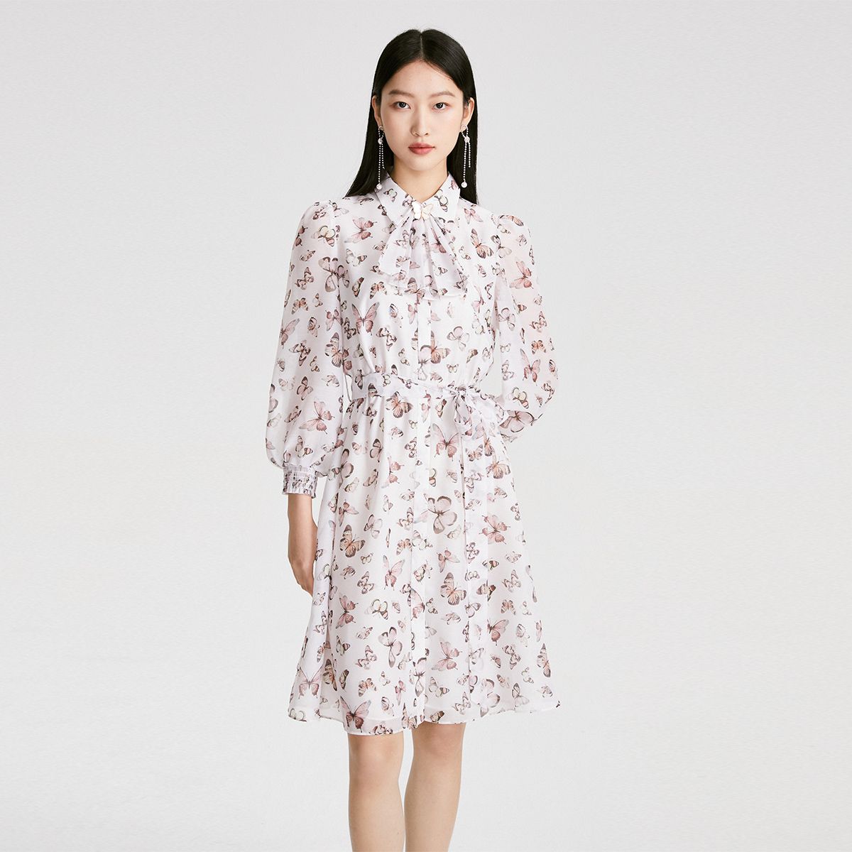 【优雅甜美蝴蝶印花】春夏专柜同款七分袖衬衫连衣裙气质百搭时尚 832017