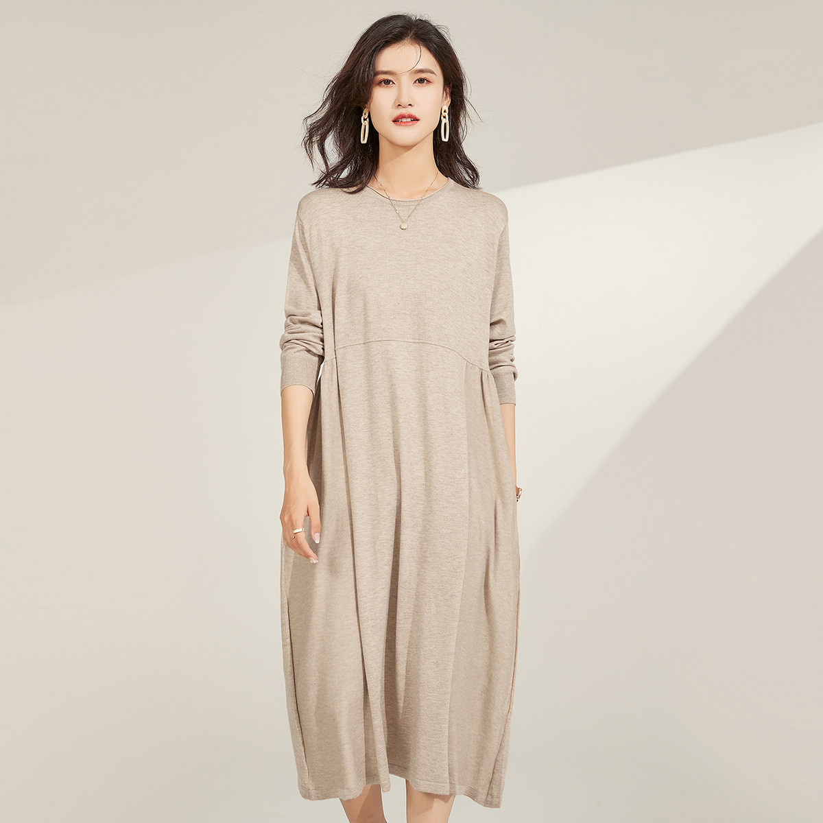 长袖针织裙女优雅气质长连衣裙过膝长裙子 386435