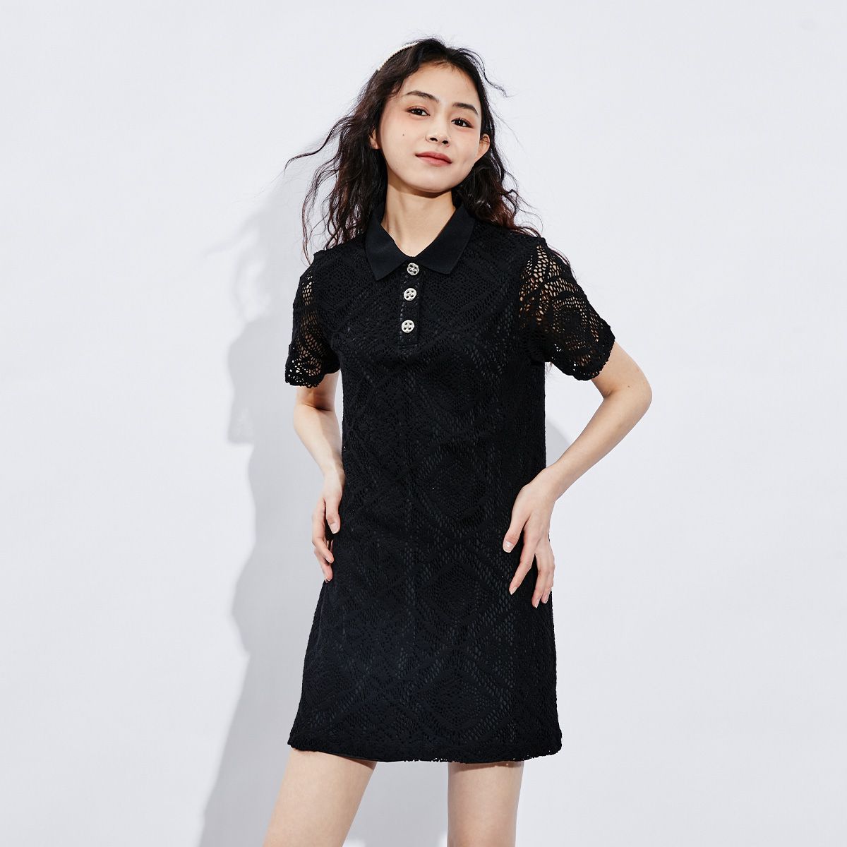 【镂空短款】夏季气质显瘦POLO领连衣裙女 749018