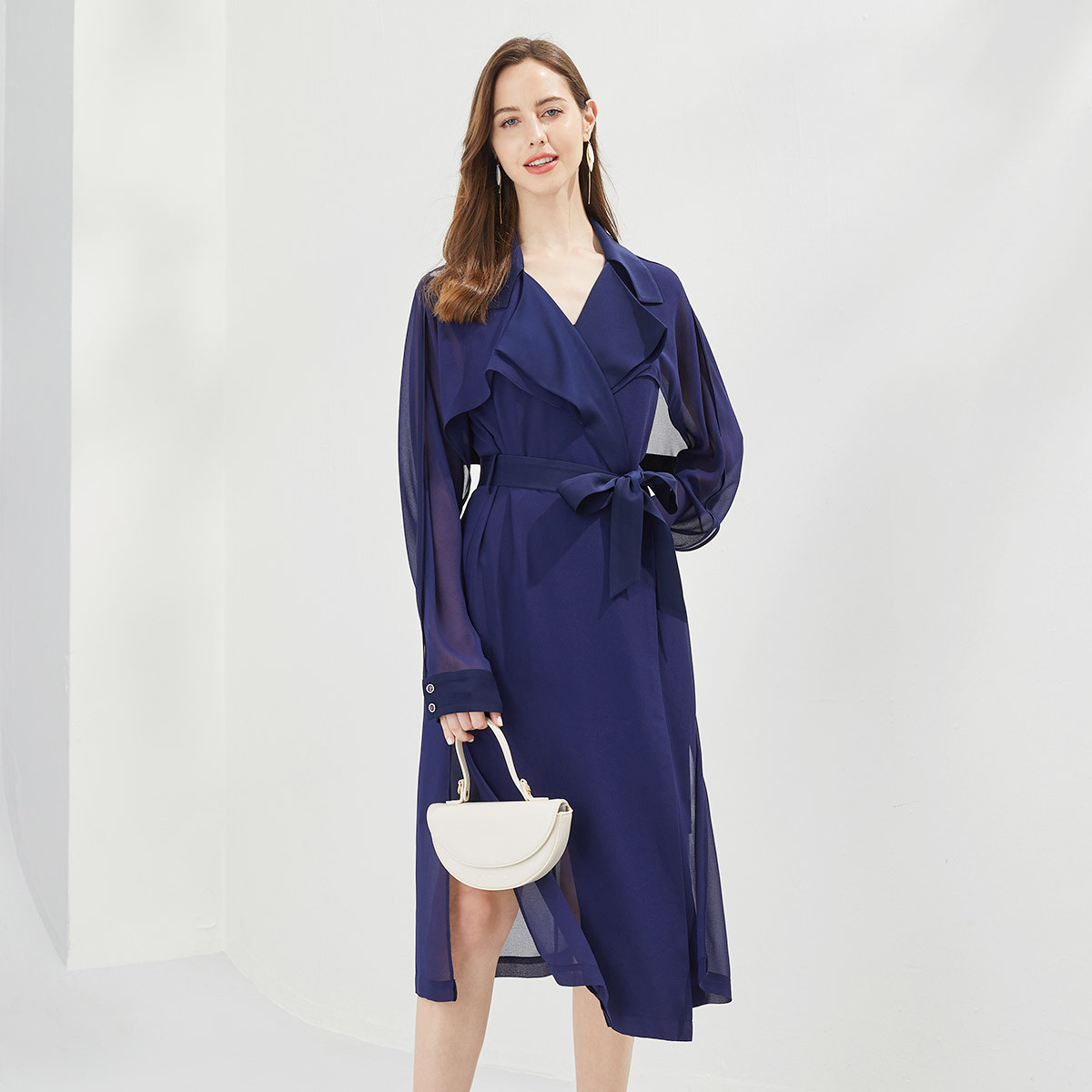 春夏风衣披肩式贴花两件套中长款连衣裙 848607