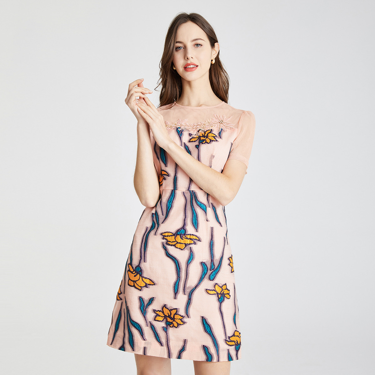 [圆领收腰显瘦]夏季温柔甜美高雅提花淑女短袖小礼服款连衣裙 739935