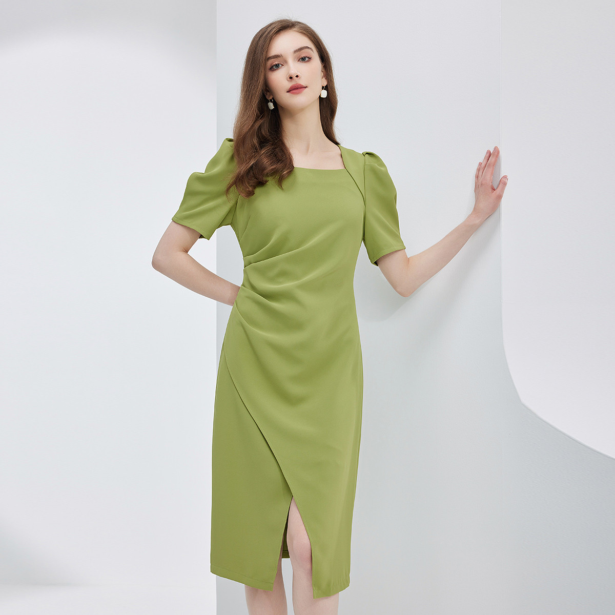 连衣裙女2025夏季新款法式气质方领褶皱收腰显瘦时尚裙子 608408