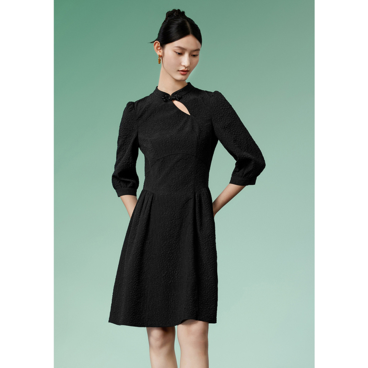 【新中式改良旗袍】春夏镂空盘扣钉珠吊坠A摆专柜连衣裙百搭时尚 114449
