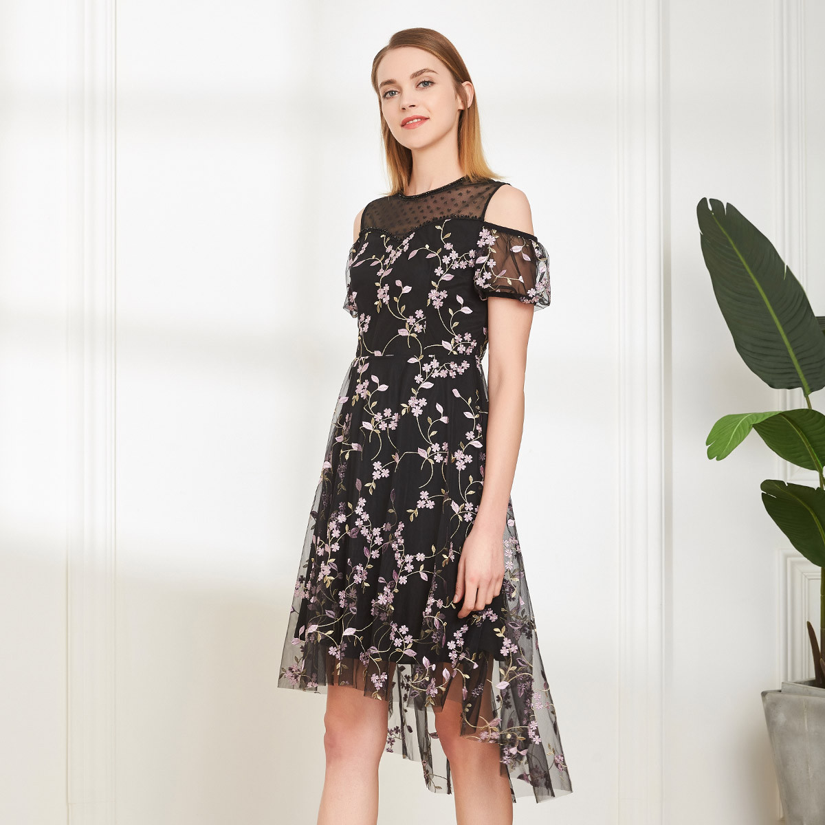 商场同款绣花气质优雅中长款短袖连衣裙 539295