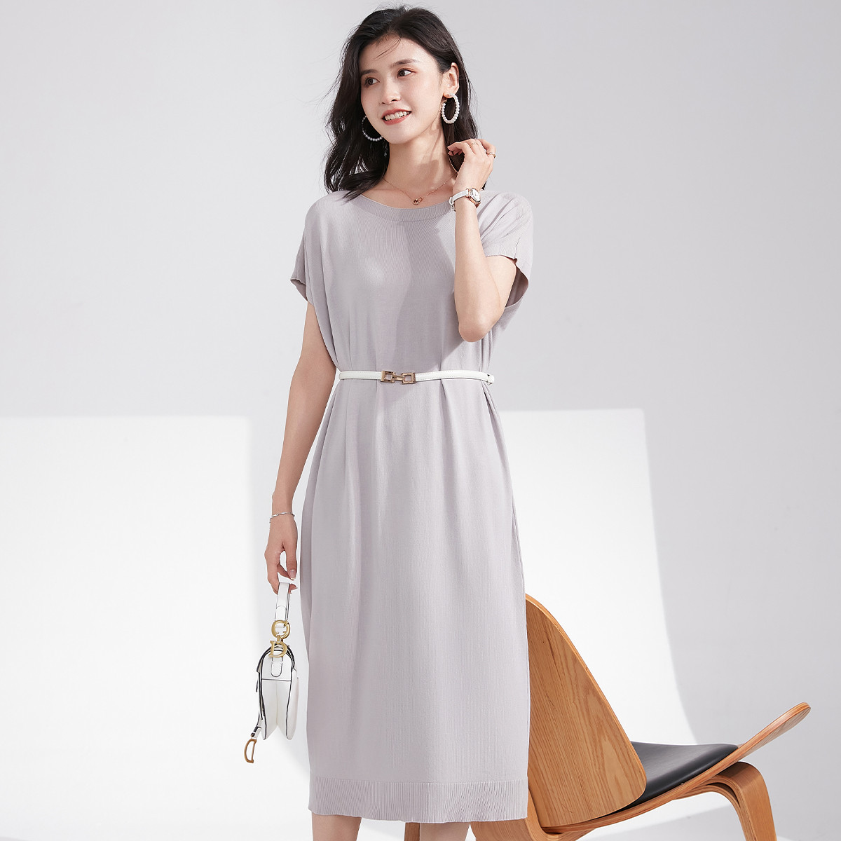 夏季连衣裙纯色连衣裙直筒连衣裙女气质高级感简约百搭圆领裙子 705375