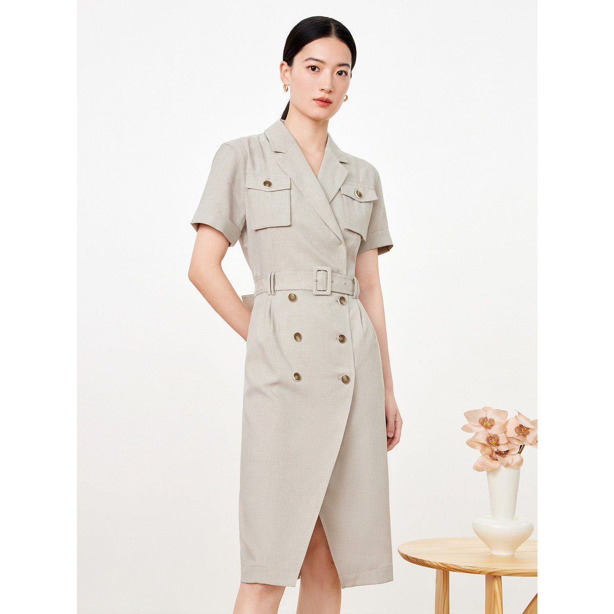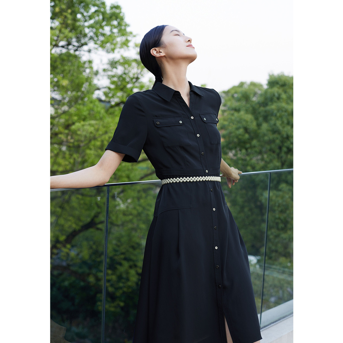 玖姿夏季知性干练商务通勤西装翻领收腰连衣裙 538444