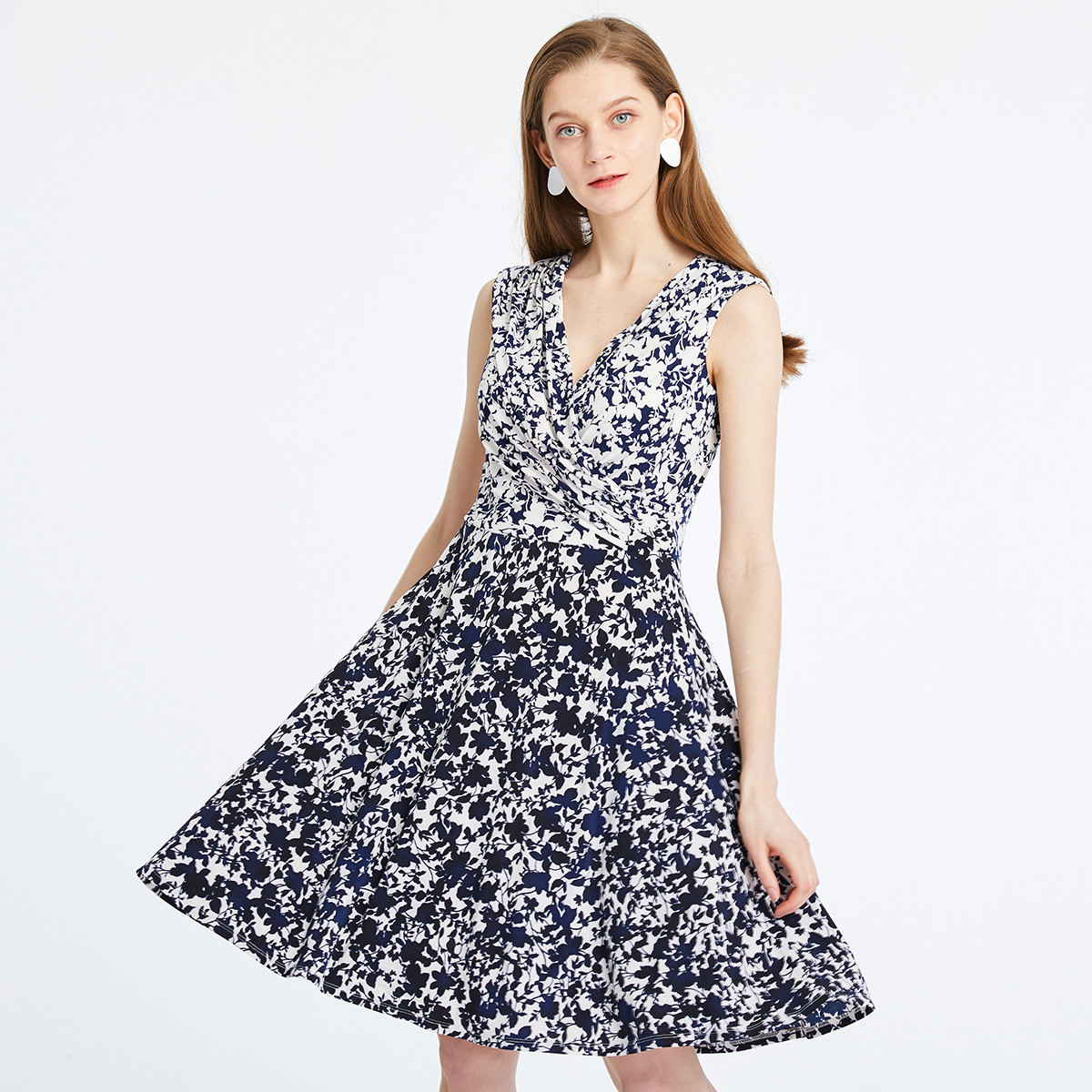 【轻奢度假】夏圆领桑蚕丝调节腰无袖抽绳印花复古连衣裙 620097