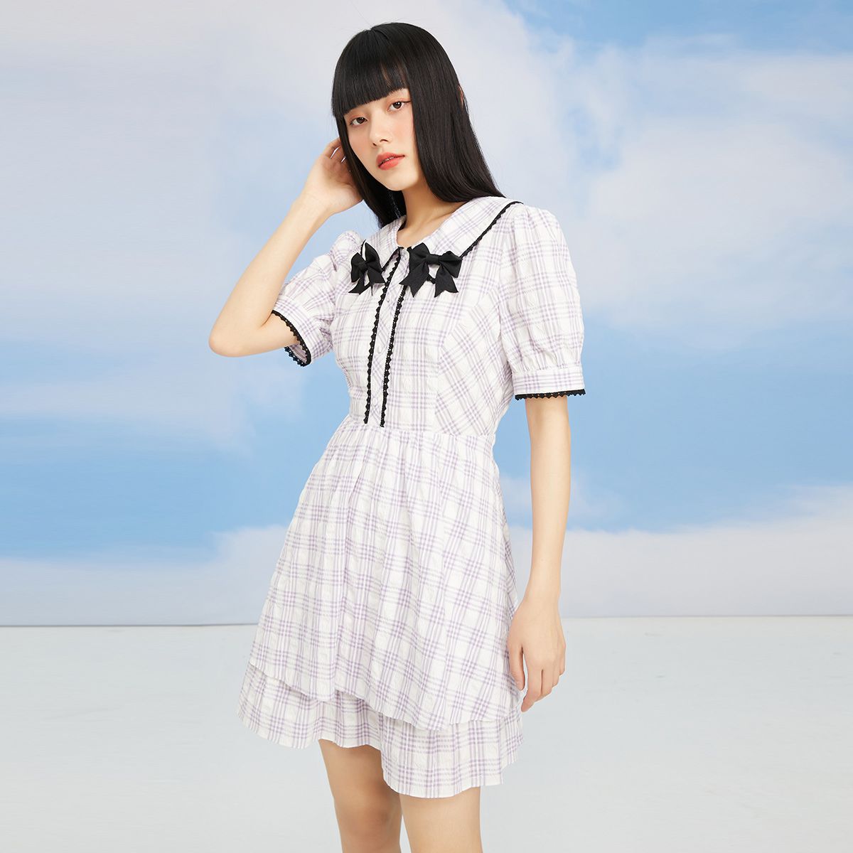 【海军领泡泡袖】夏季季短款长袖连衣裙女 663386