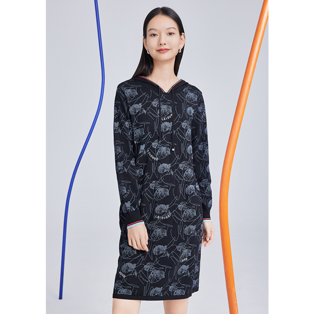商场同款JZ玖姿秋季直筒印花连衣裙女JWCQ31402 175116