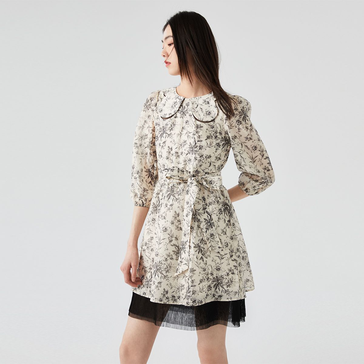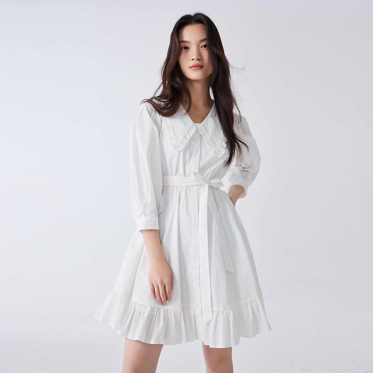 【甜美少女荷叶边】春夏商场同款娃娃领七分袖连衣裙气质百搭时尚 003281