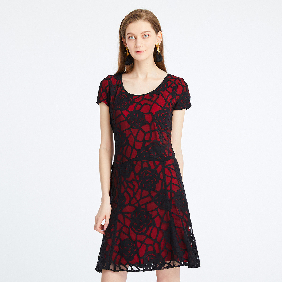 商场同款春夏U型领气质显瘦蕾丝连衣裙 765535