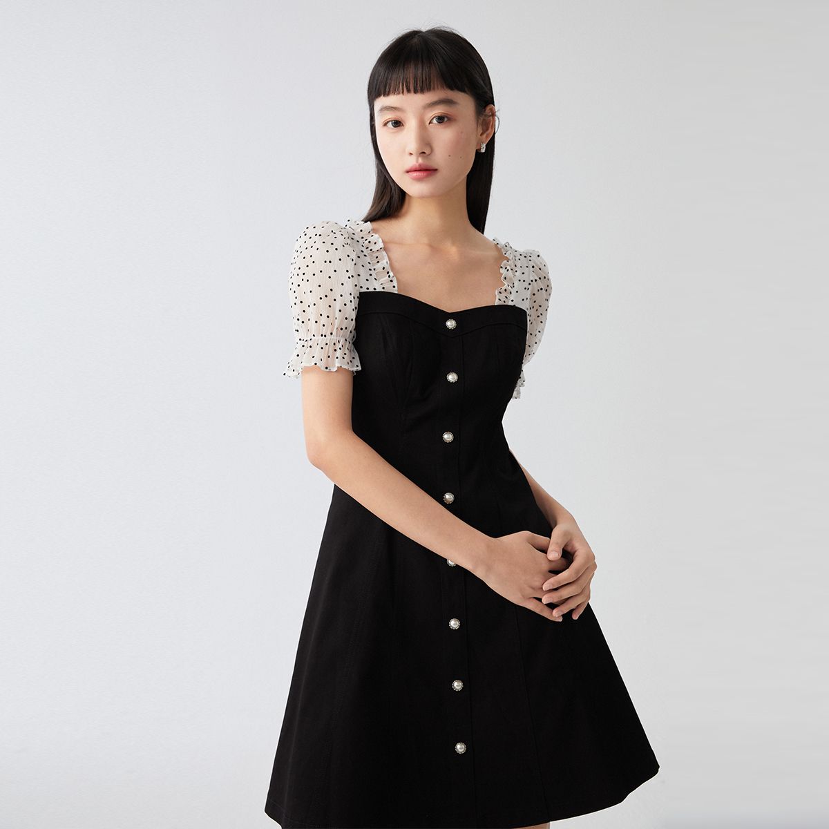 【显瘦小黑裙商场同款】气质甜美泡泡袖牛仔裙连衣裙 438801