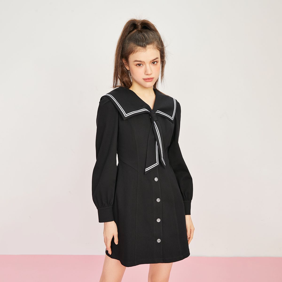 【海军领泡泡袖】夏季季短款长袖连衣裙女 577370