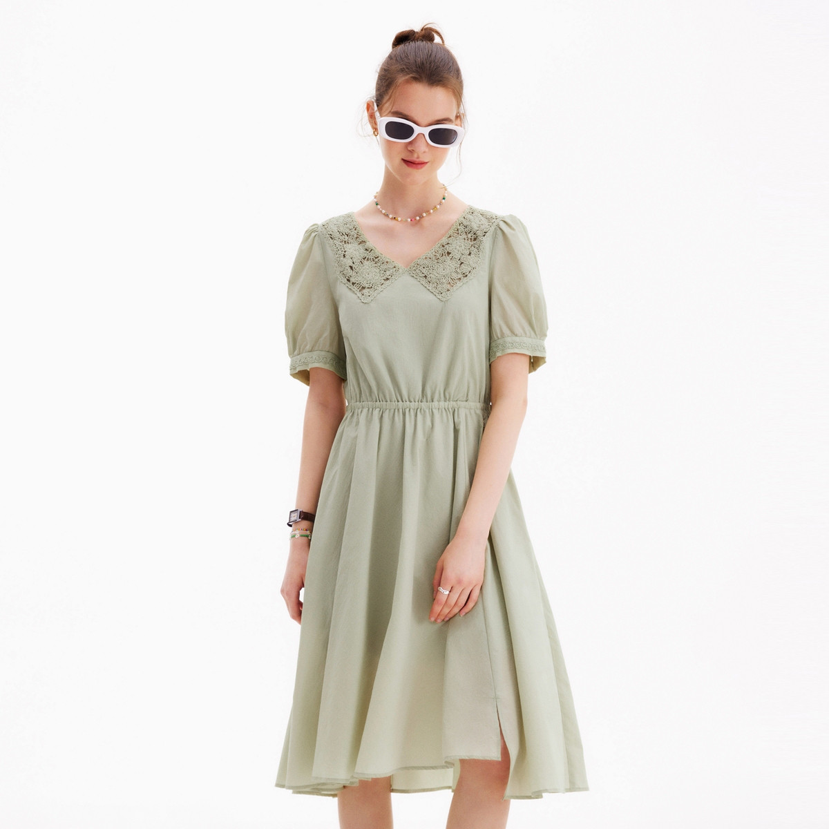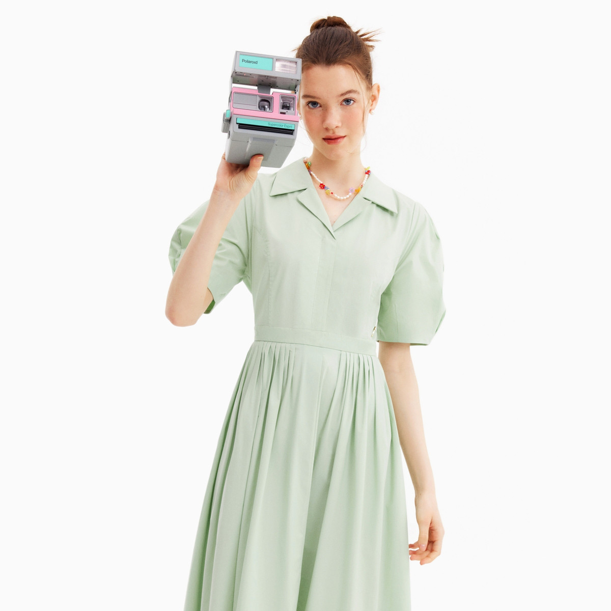 【纯色泡泡袖】夏季气质简约中长款连衣裙女 929754