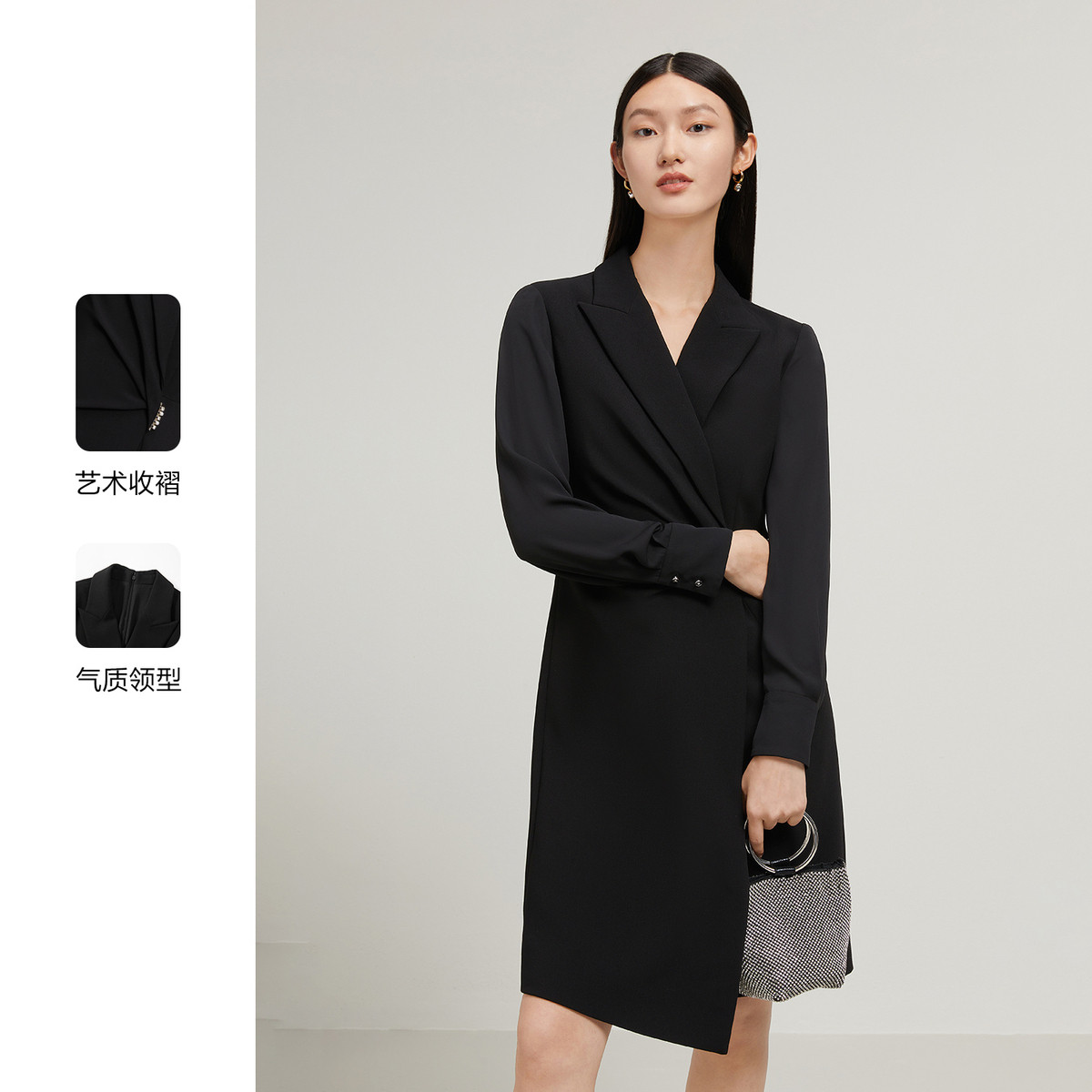 JZ玖姿雪纺拼接西装连衣裙秋季职业通勤OL风裙子 510604