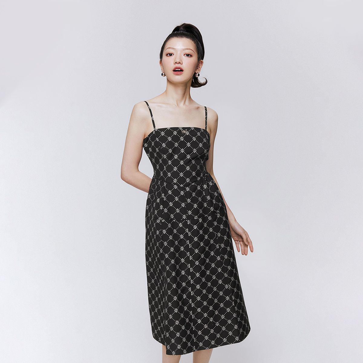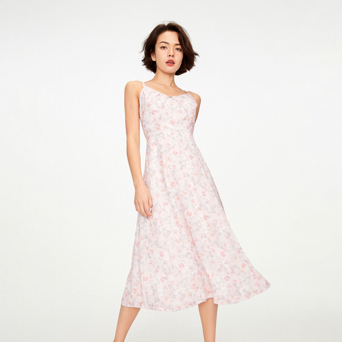 【气质A字】夏季高腰收腰吊带中长款连衣裙女 366234