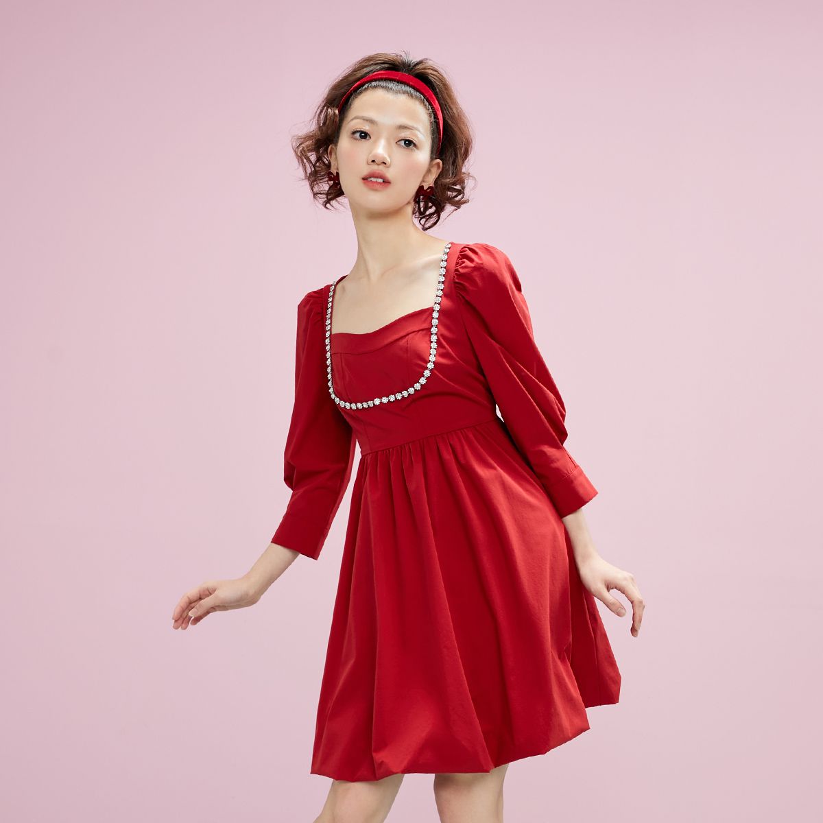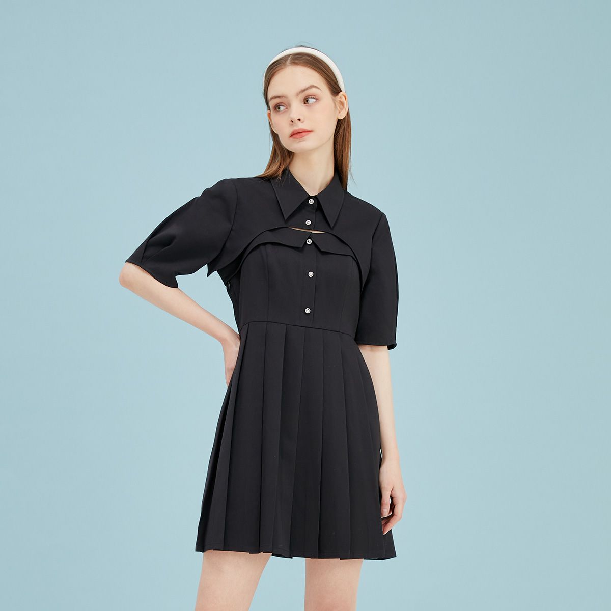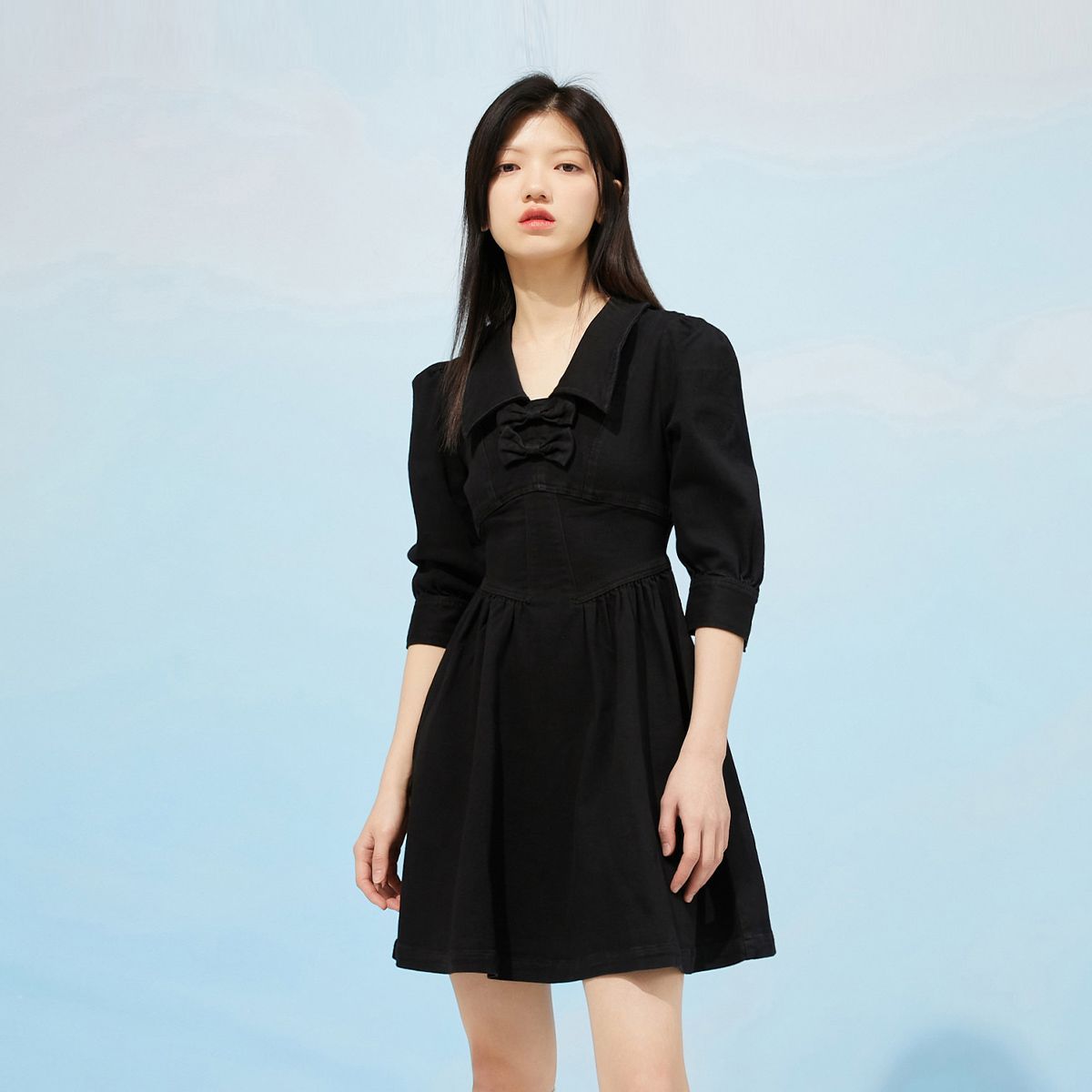 【福利款】夏季娃娃领短款长袖连衣裙女 335514