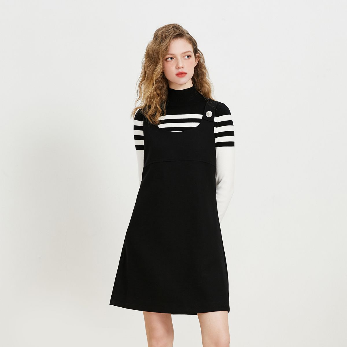 【春秋专柜款】吊带纯色A字收腰七分袖针织衫连衣裙女 983121