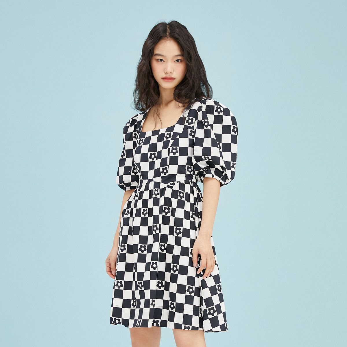 【福利款】夏季舒适短款收腰显瘦泡泡袖连衣裙女 032986