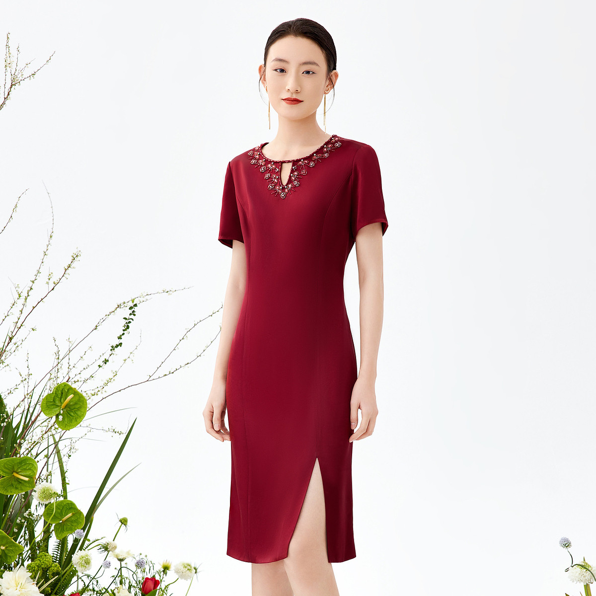 JZ玖姿商场同款女装夏季玖度红缎面醋酸连衣裙JWCX50096 210444