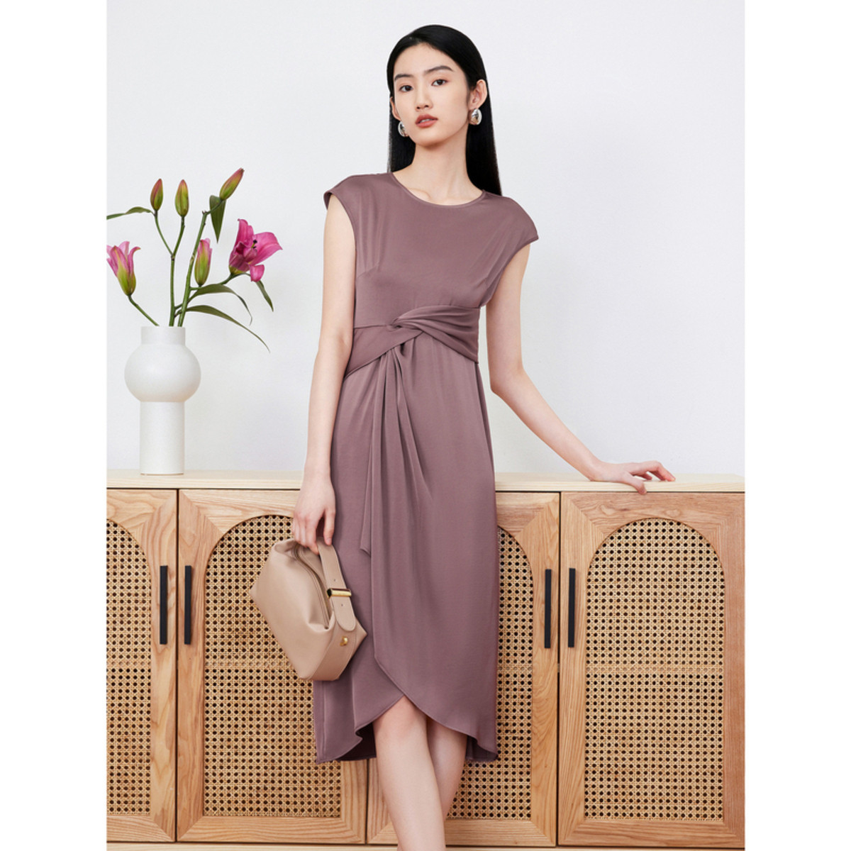 玖姿旗下安娜蔻系列无袖连衣裙女装夏季OL风知性裙子 591756