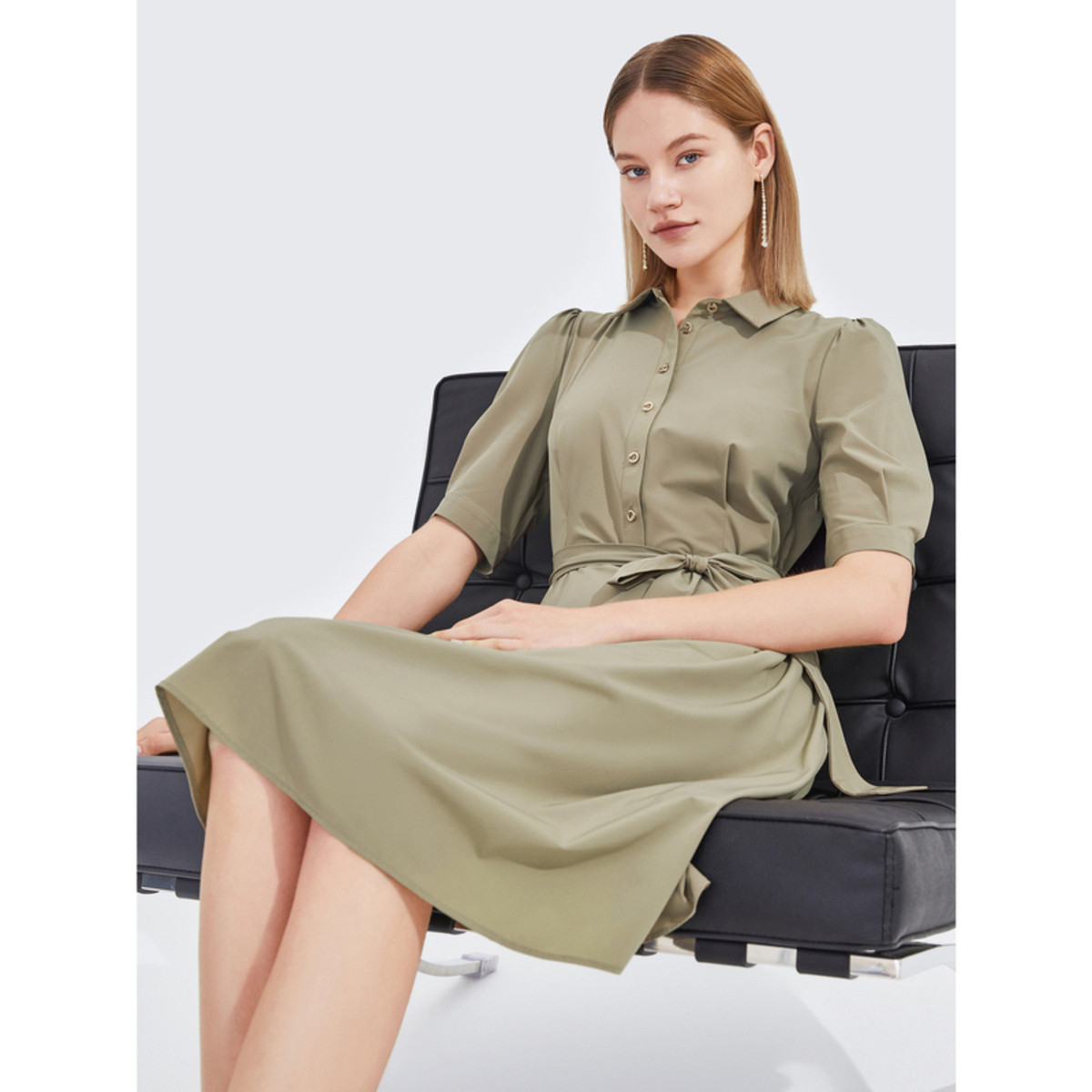 JZ玖姿夏季商务通勤气质干练翻领衬衫连衣裙 125516