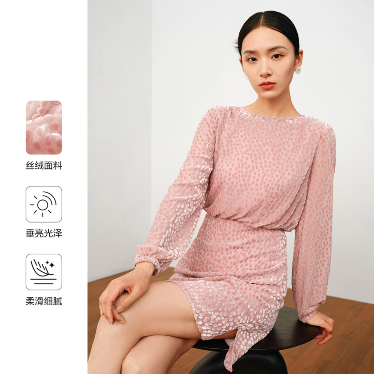 玖姿旗下安娜蔻系列优雅法式复古X型收腰开衩丝绒烧花连衣裙秋季 125900