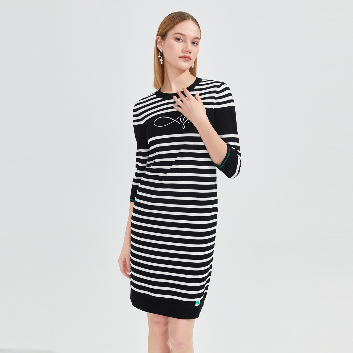 商场同款条纹针织裙女春季刺绣连衣裙JWCC31504 671052